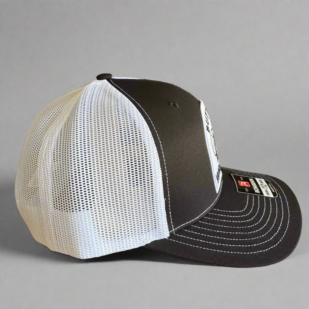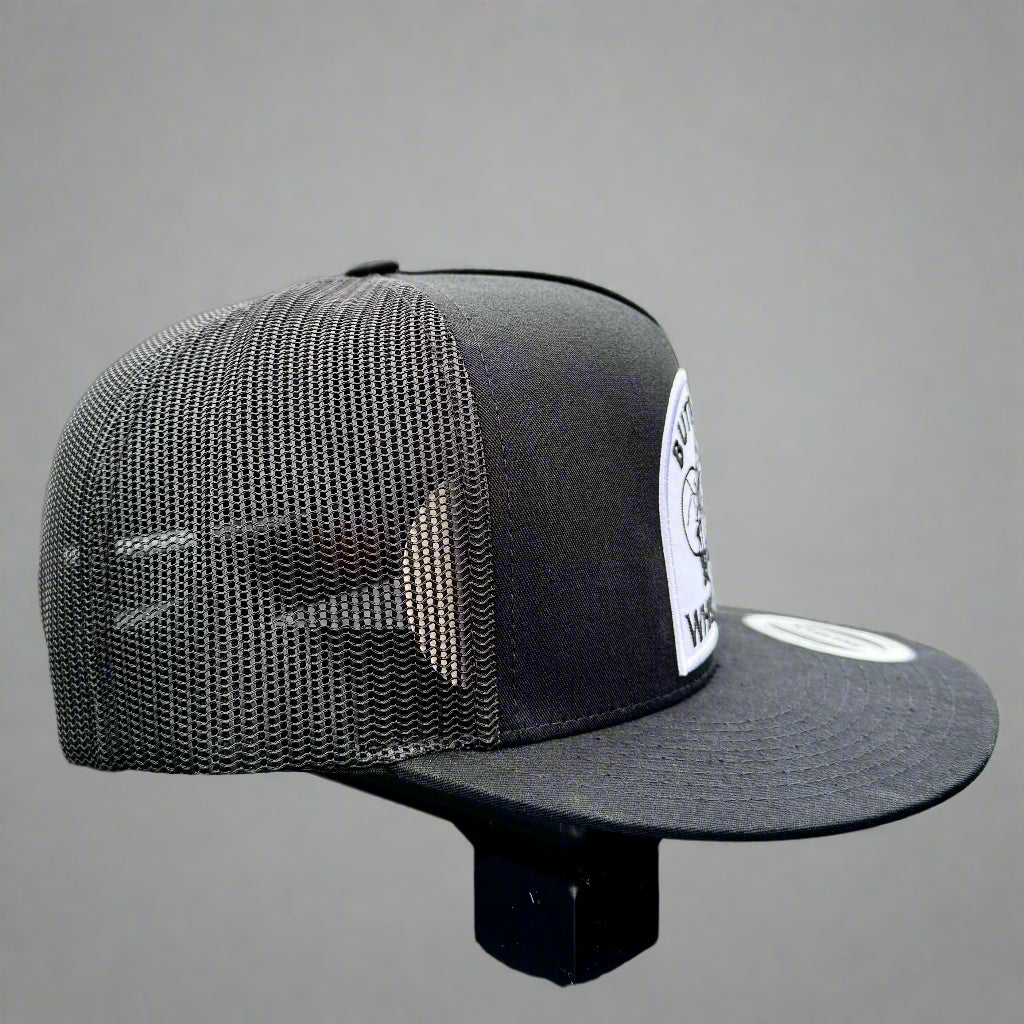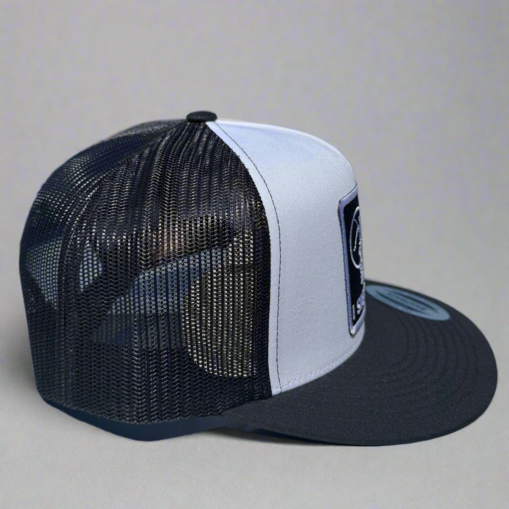 Yupoong 6006 Blk/Wh/Blk - Blk/ Wh embroidered patch