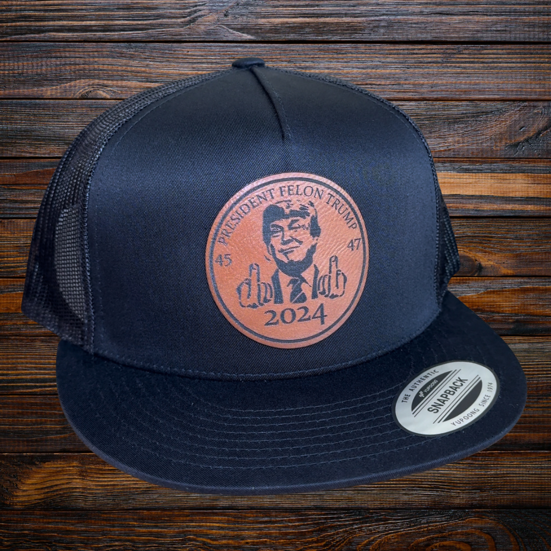 QUICK ORDER Don’t Bite The Hand That Fingers You Hat - brown leather circle patch