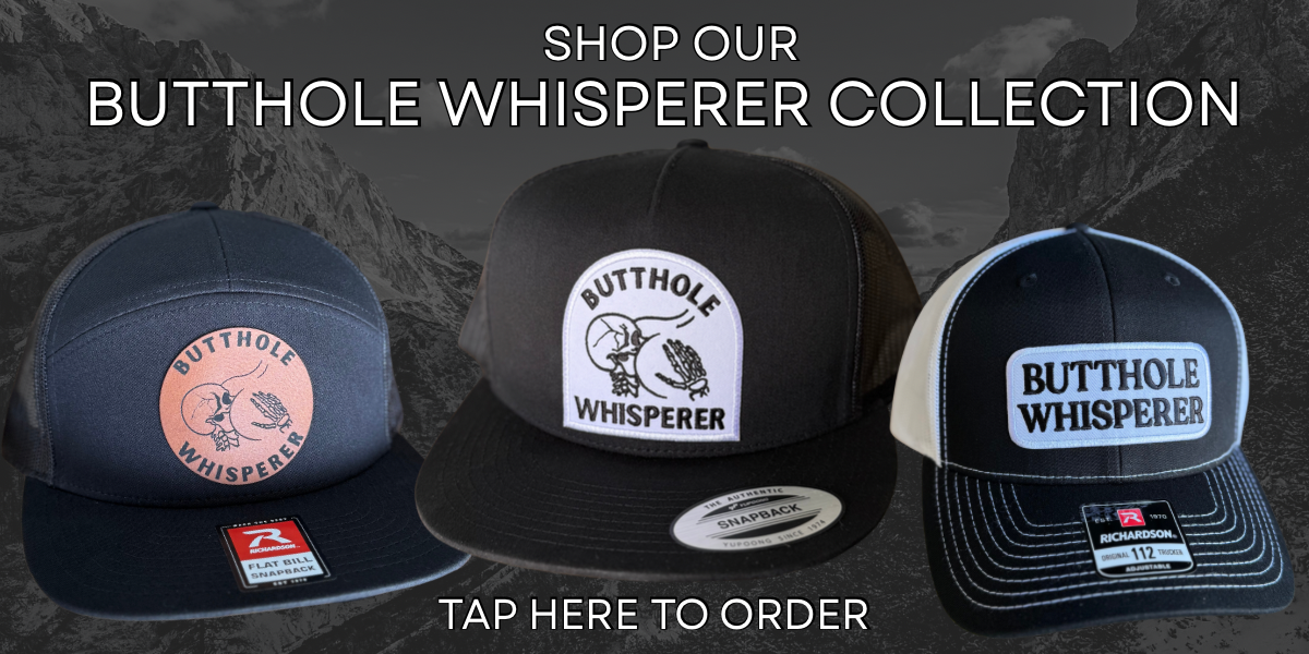 QUICK ORDER Butthole Whisperer Hat - leather circle skeleton patch