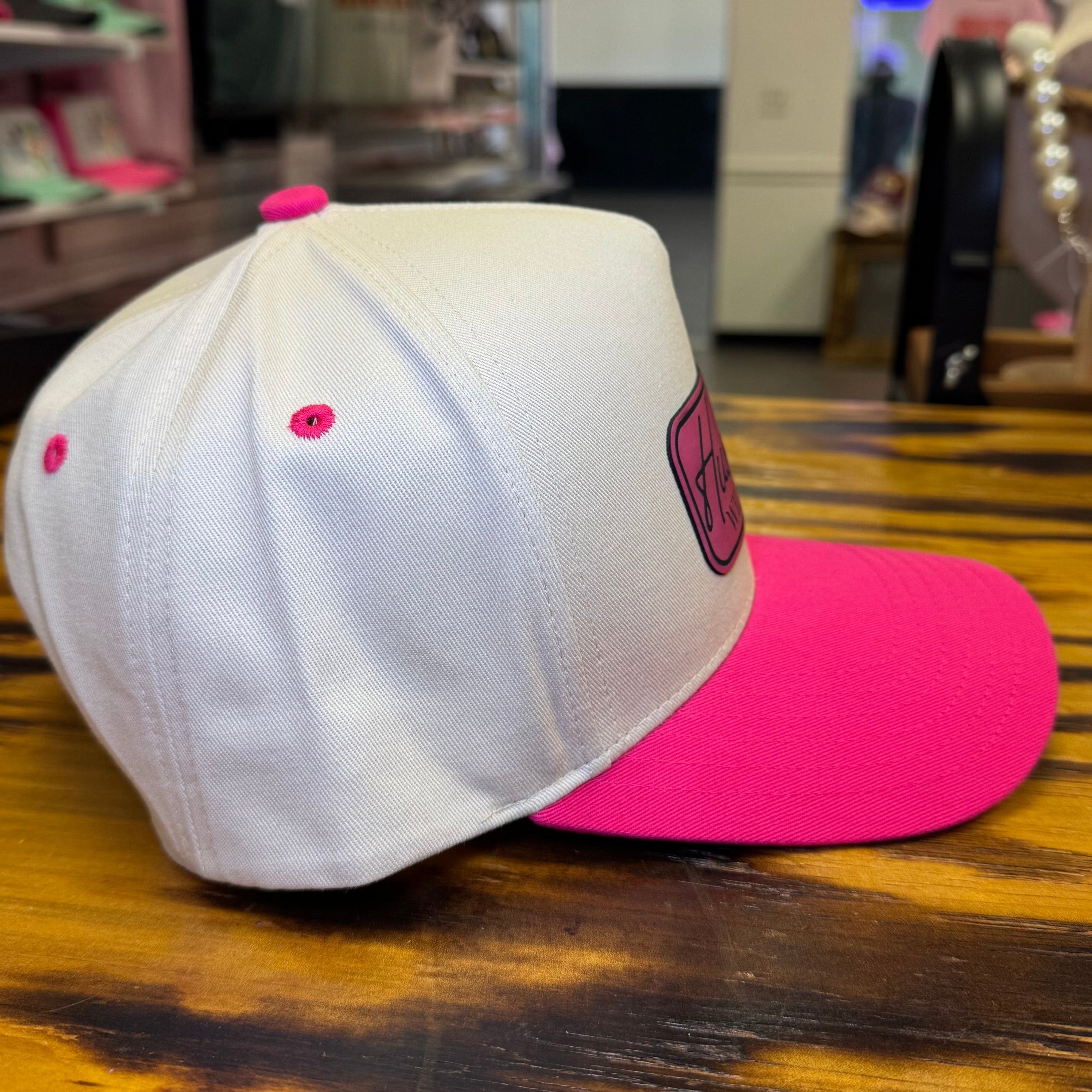 C.C two tone canvas hat - khaki/hot pink - Pink leather patch