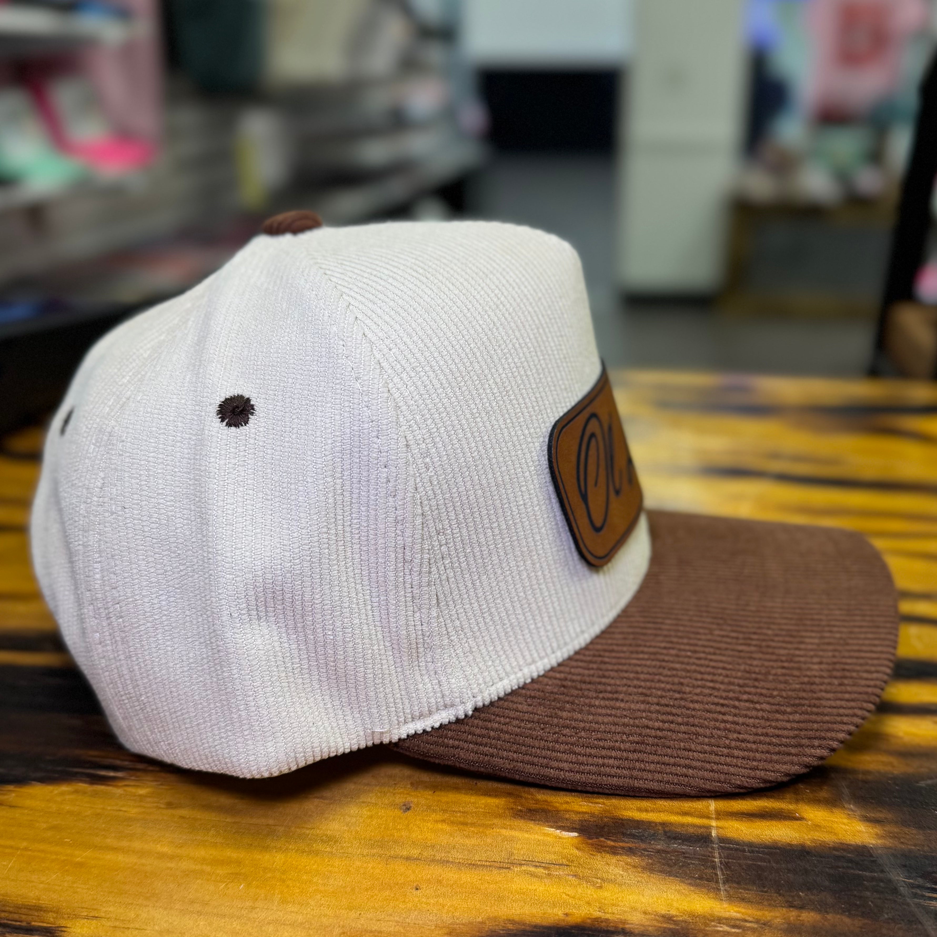 C.C brand Corduroy baseball cap - Khaki/Brown - brown leather patch