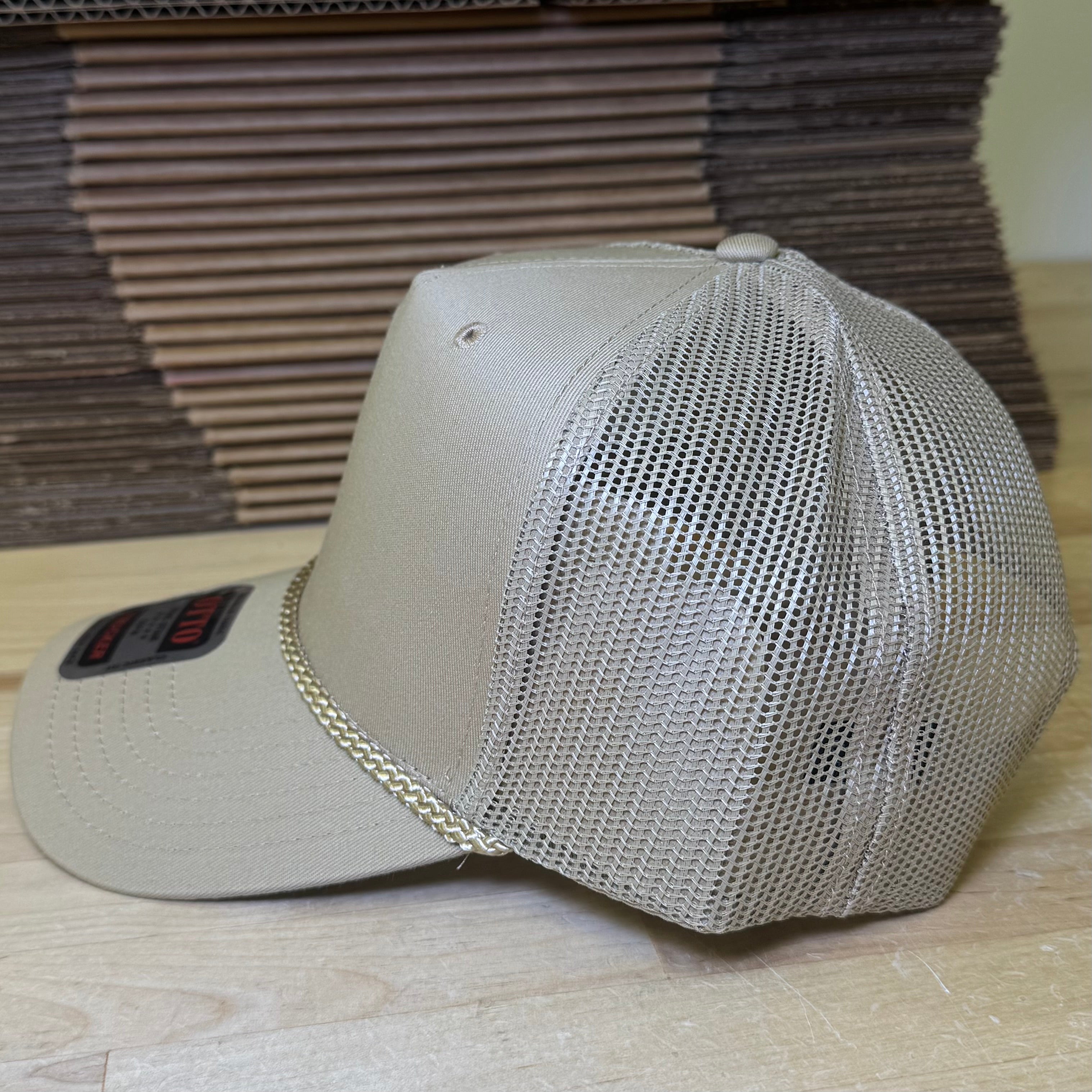 OTTO Rope Trucker Hat - Khaki - brown leather patch