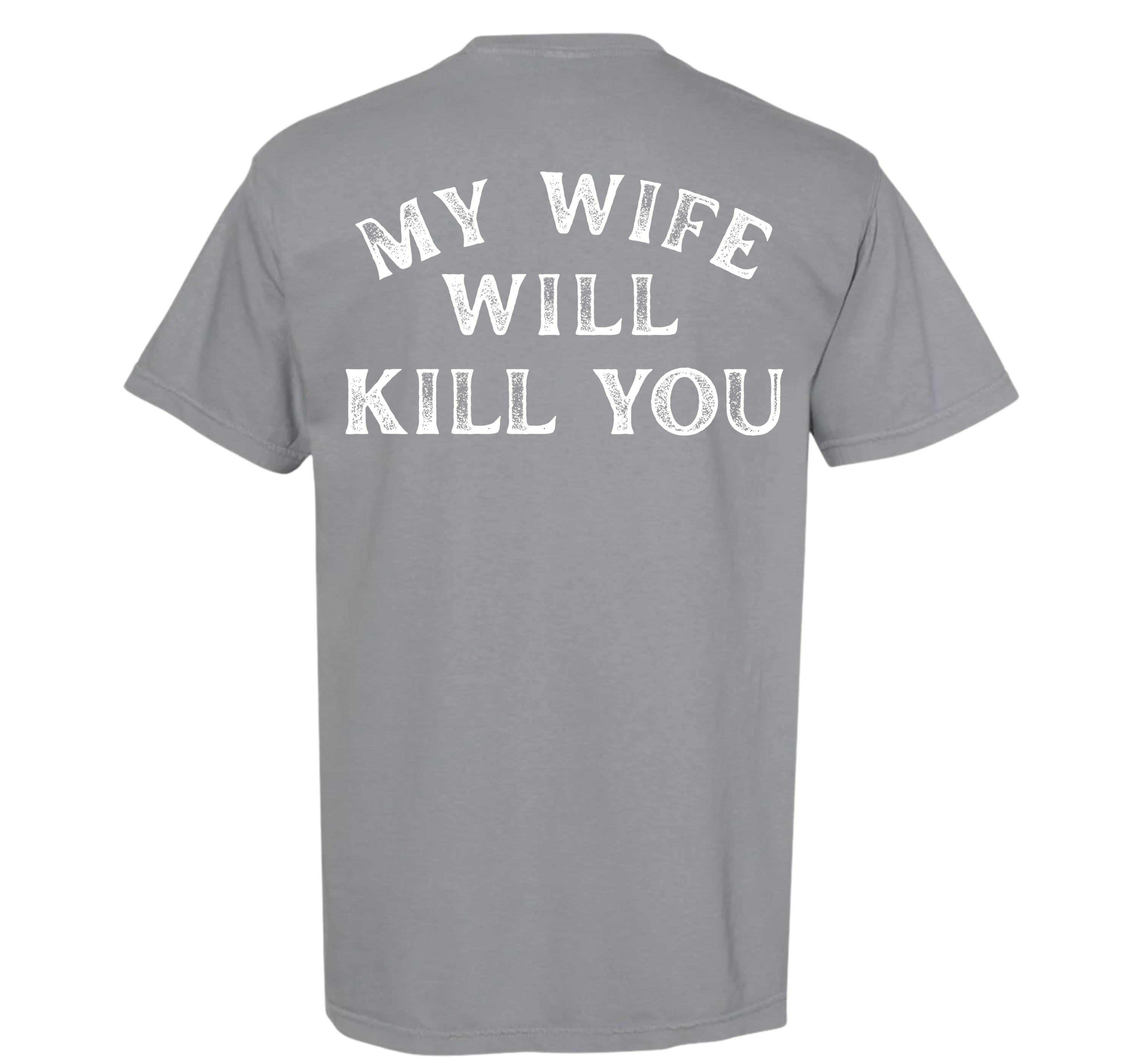 Comfort Colors My wife will k*ll you pocket tee - grey shirt/ white design