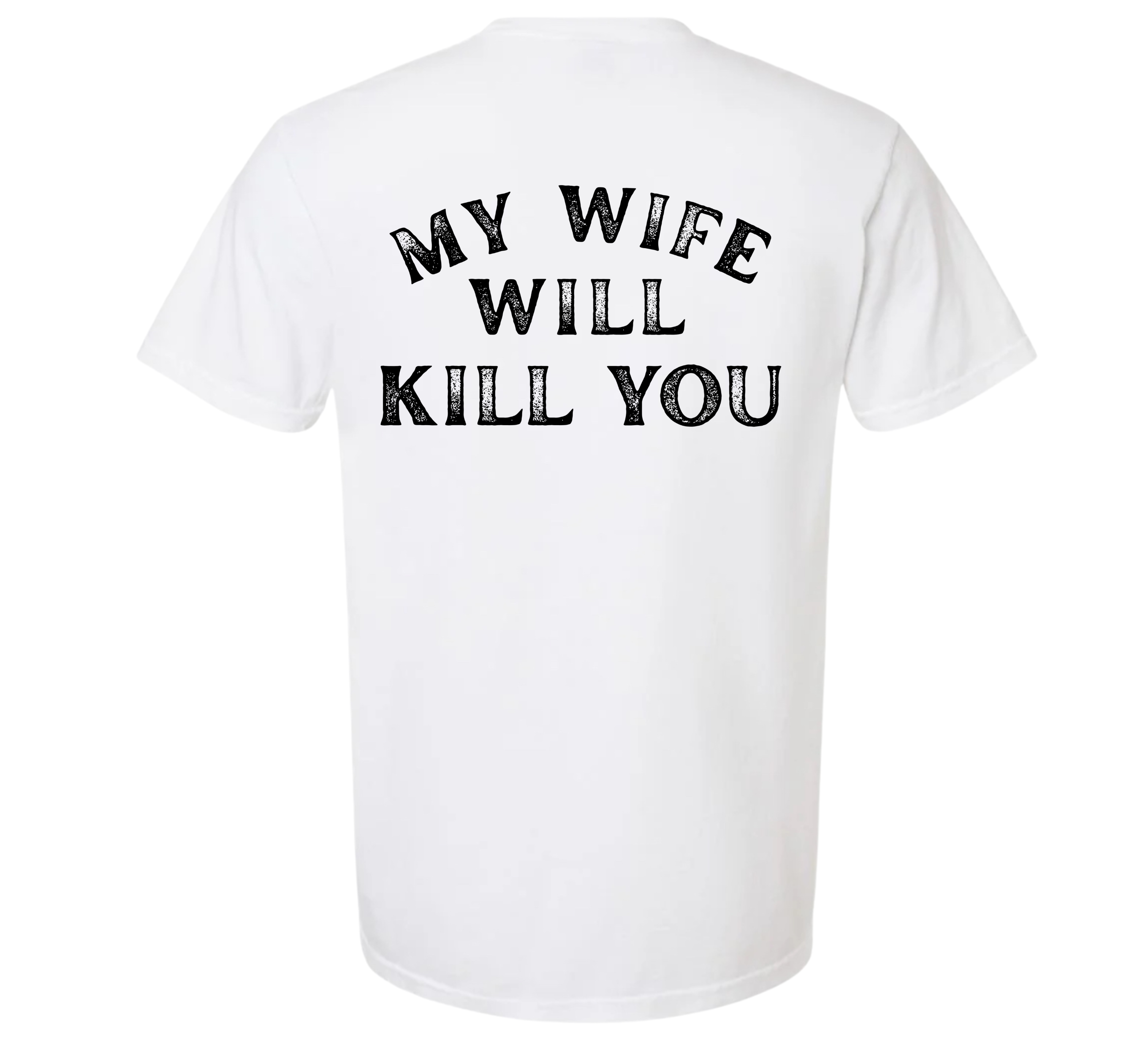 Comfort Colors My wife will k*ll you pocket tee - white shirt/ black design
