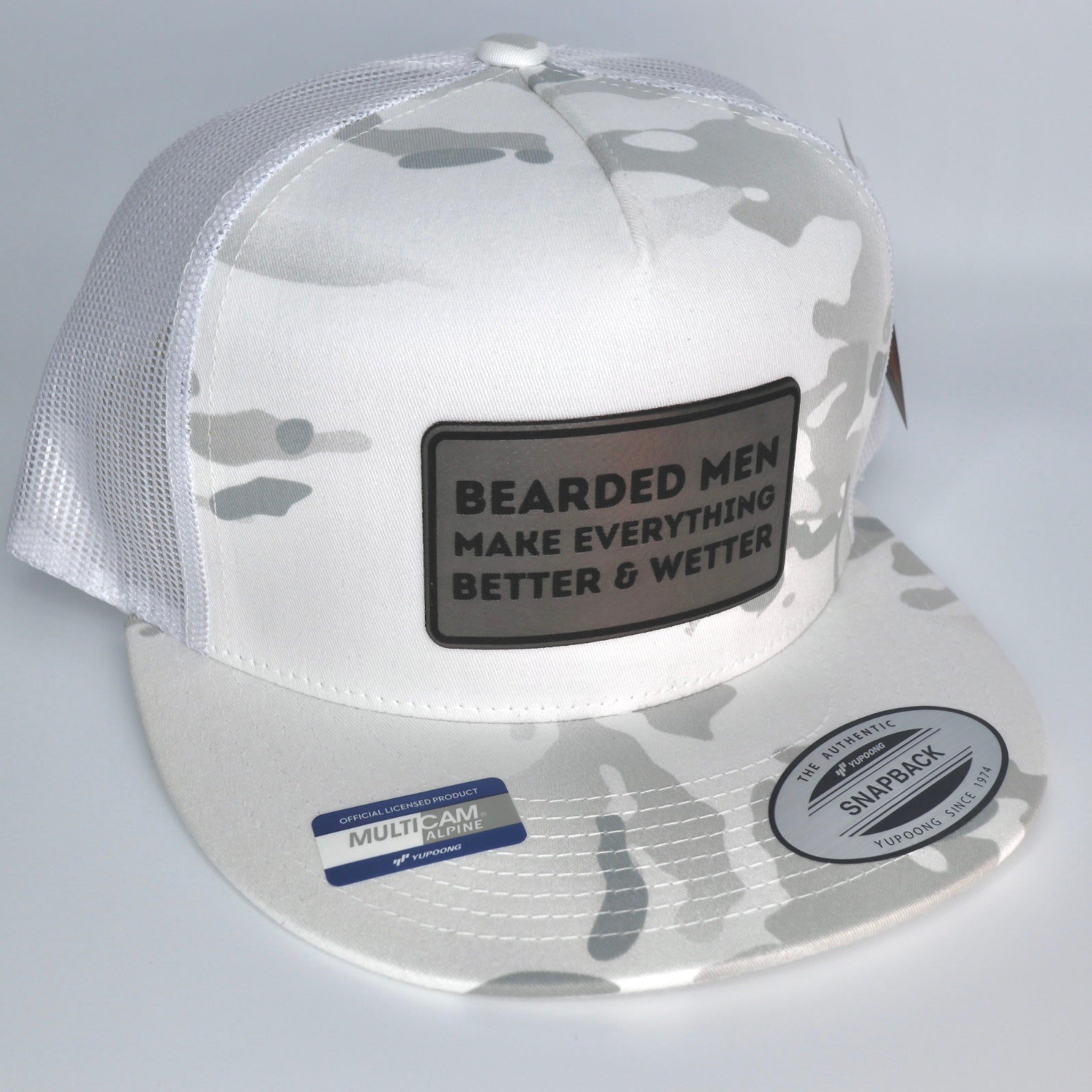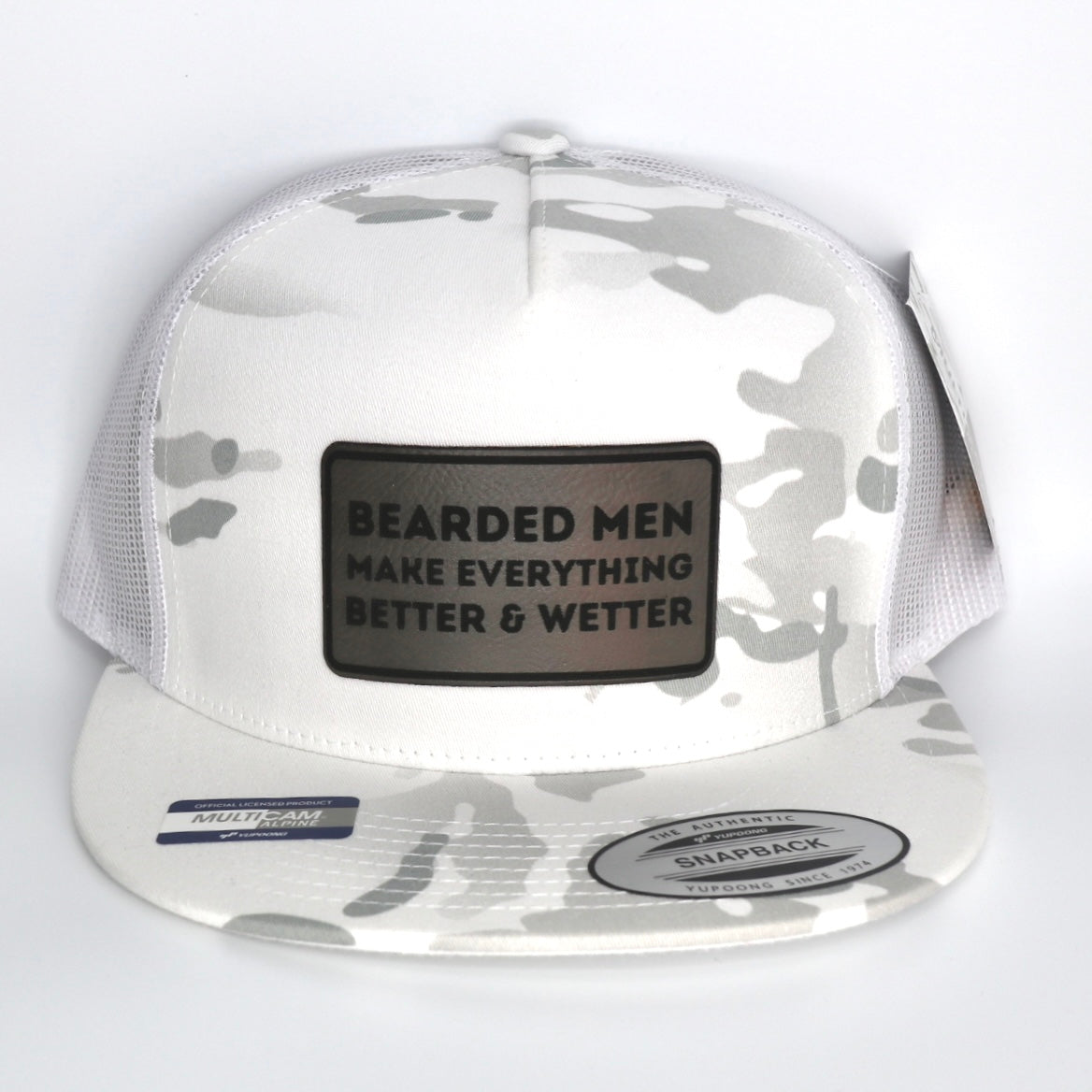QUICK ORDER Bearded Men Make Everything Better & Wetter Hat - 6006 white camo / grey leather patch