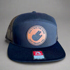 flat bill, mesh back, 7 panel, high profile, adjustable snapback closure