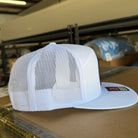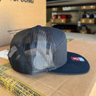 flat bill, mesh back, high profile, adjustable snapback closure