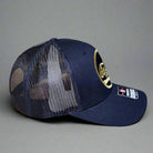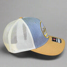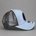 curved bill, mesh back, mid profile, adjustable snapback closure