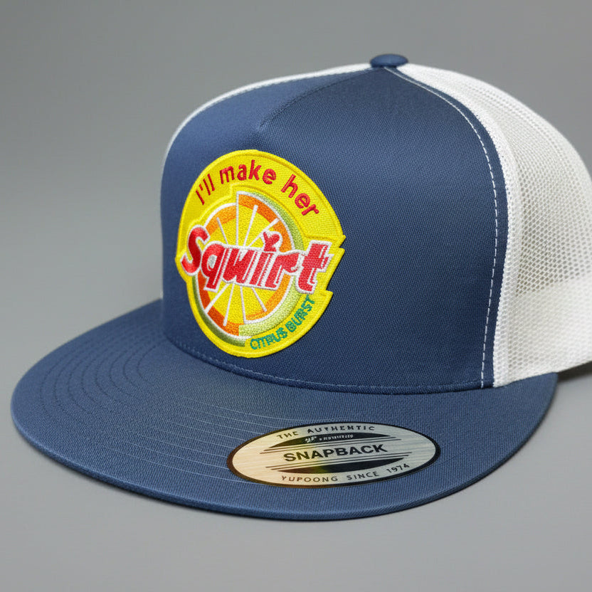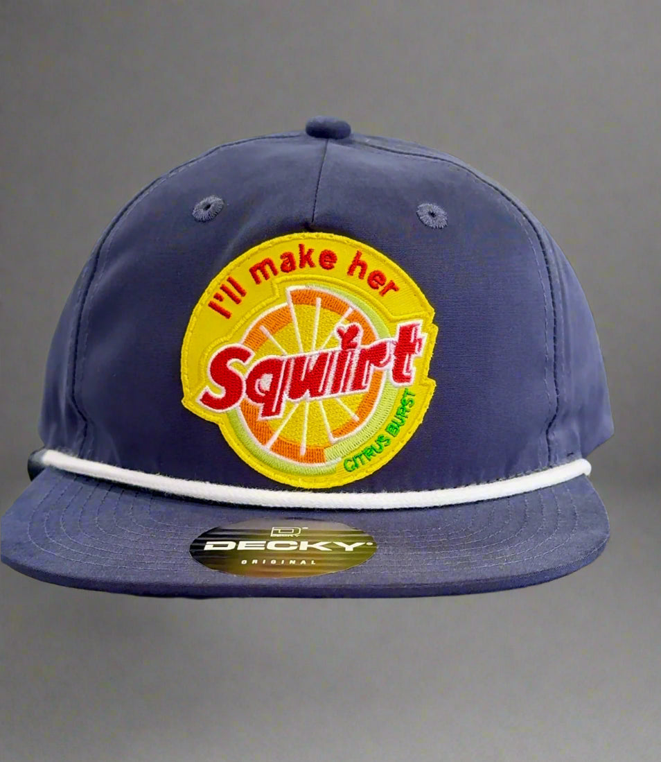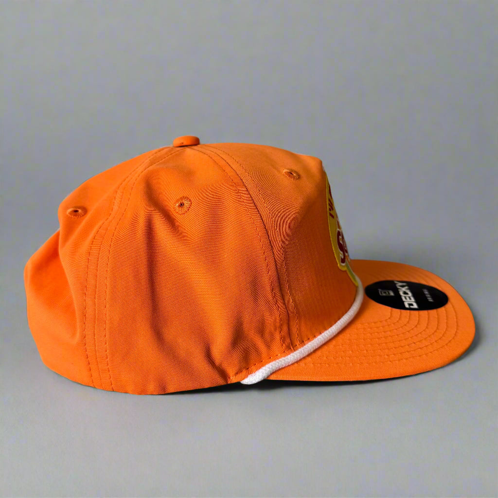 flat bill, solid back, low profile, white rope, adjustable snapback closure