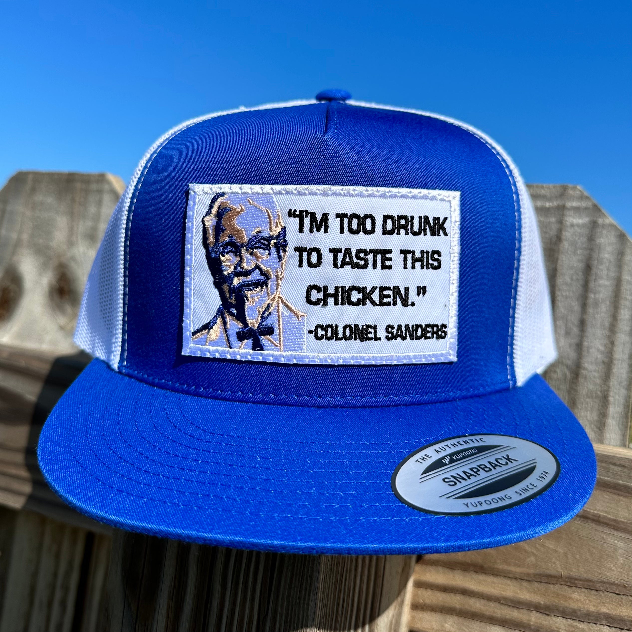 QUICK ORDER I’m too Drunk To Taste This Chicken Hat - White Patch/ Royal Blue & White 6006