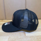 flat bill, mesh back, high profile, adjustable SnapBack closure