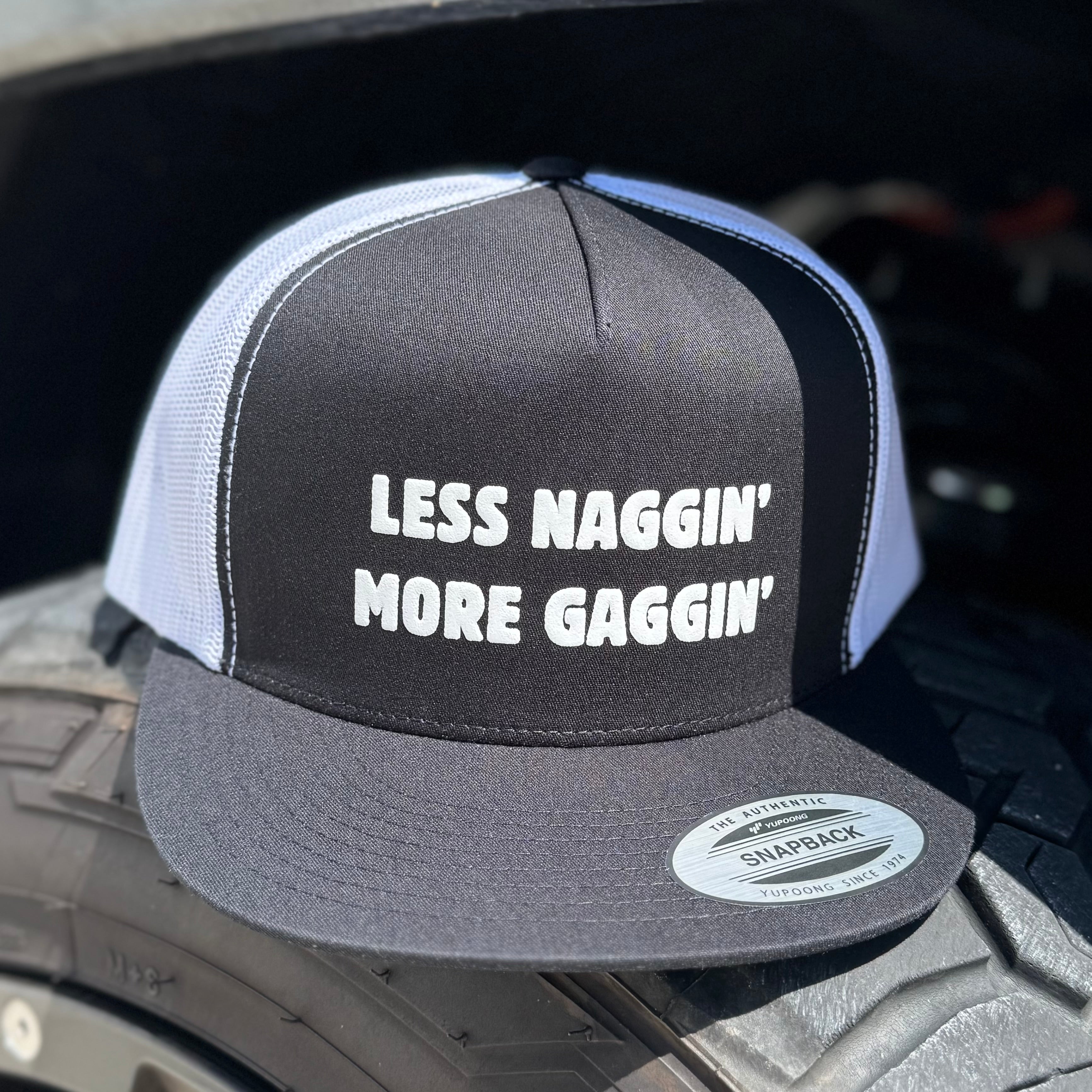 QUICK ORDER Less Naggin’ More Gaggin’ Hat - Blk/ Wh 6006 | DTF Puff printed design