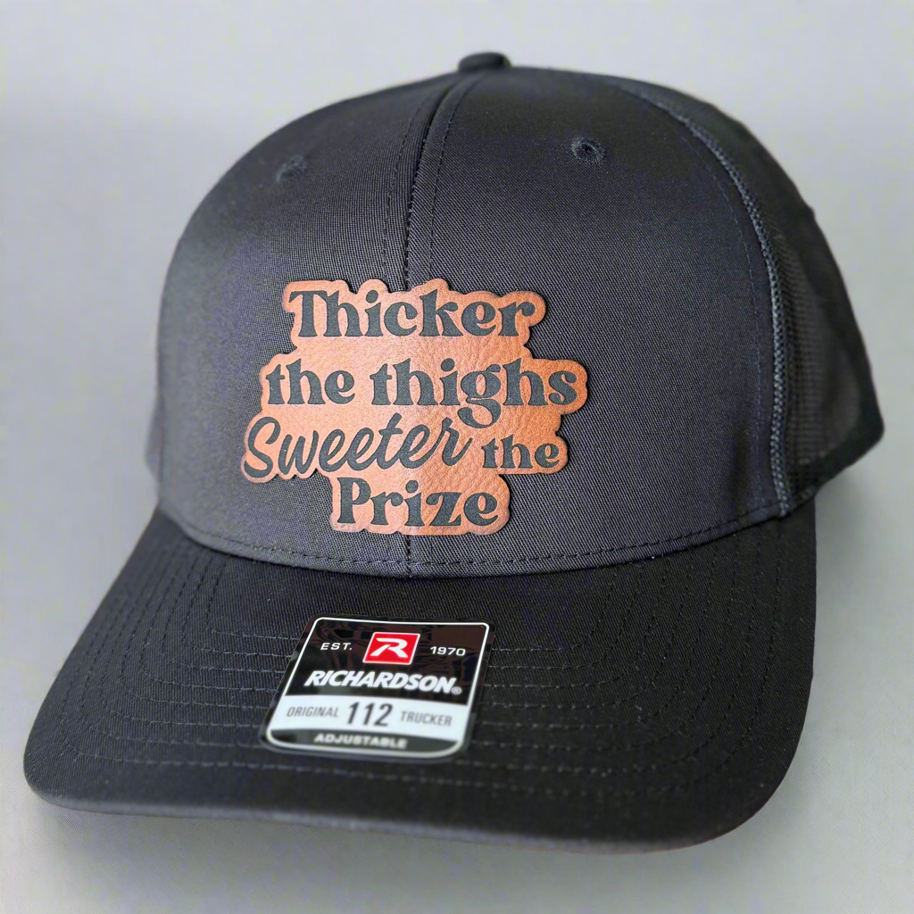 QUICK ORDER Thicker The Thighs Sweeter The Prize Hat - Blk 112/ Leather patch