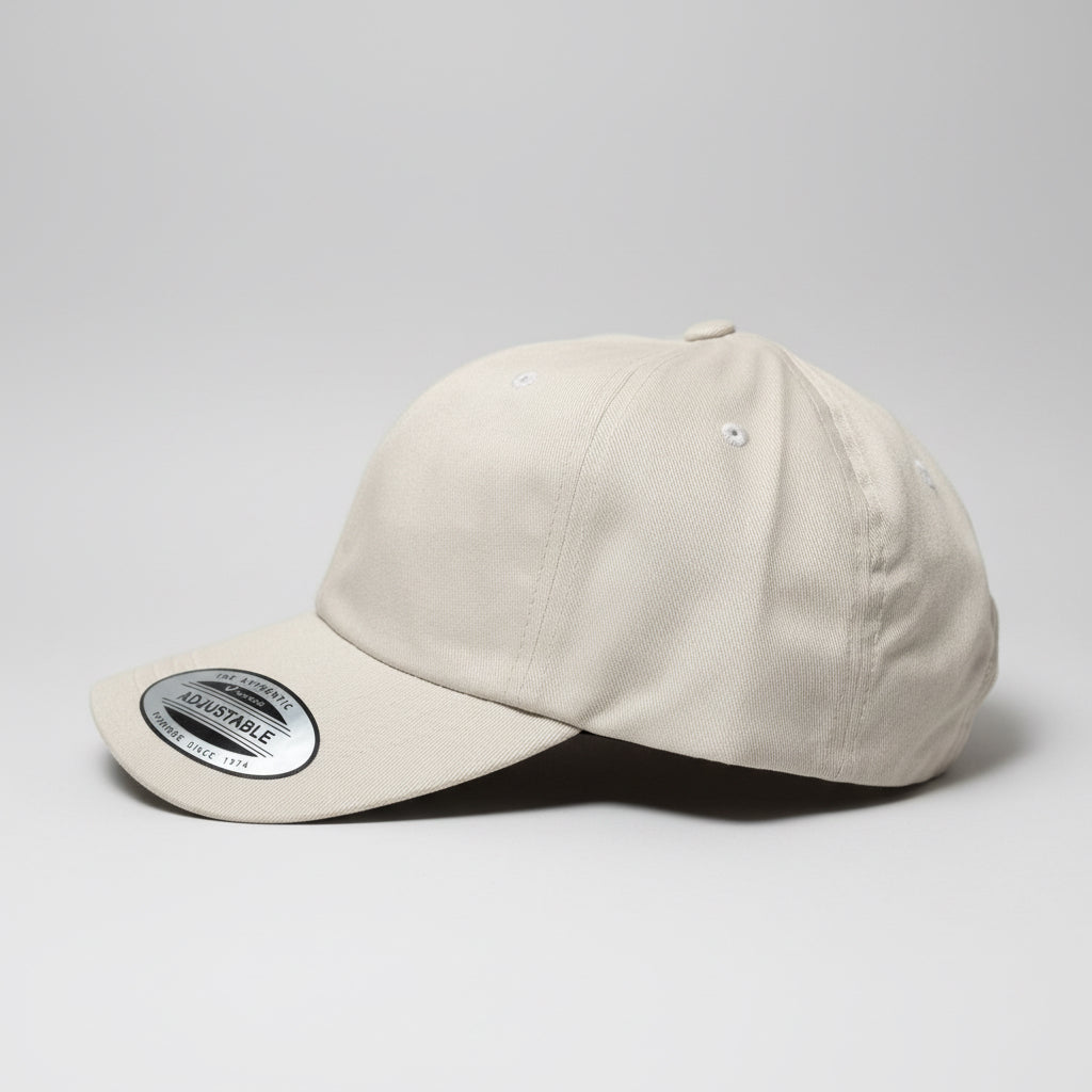 curved bill, solid non-mesh back, unstructured, low profile, adjustable metal buckle