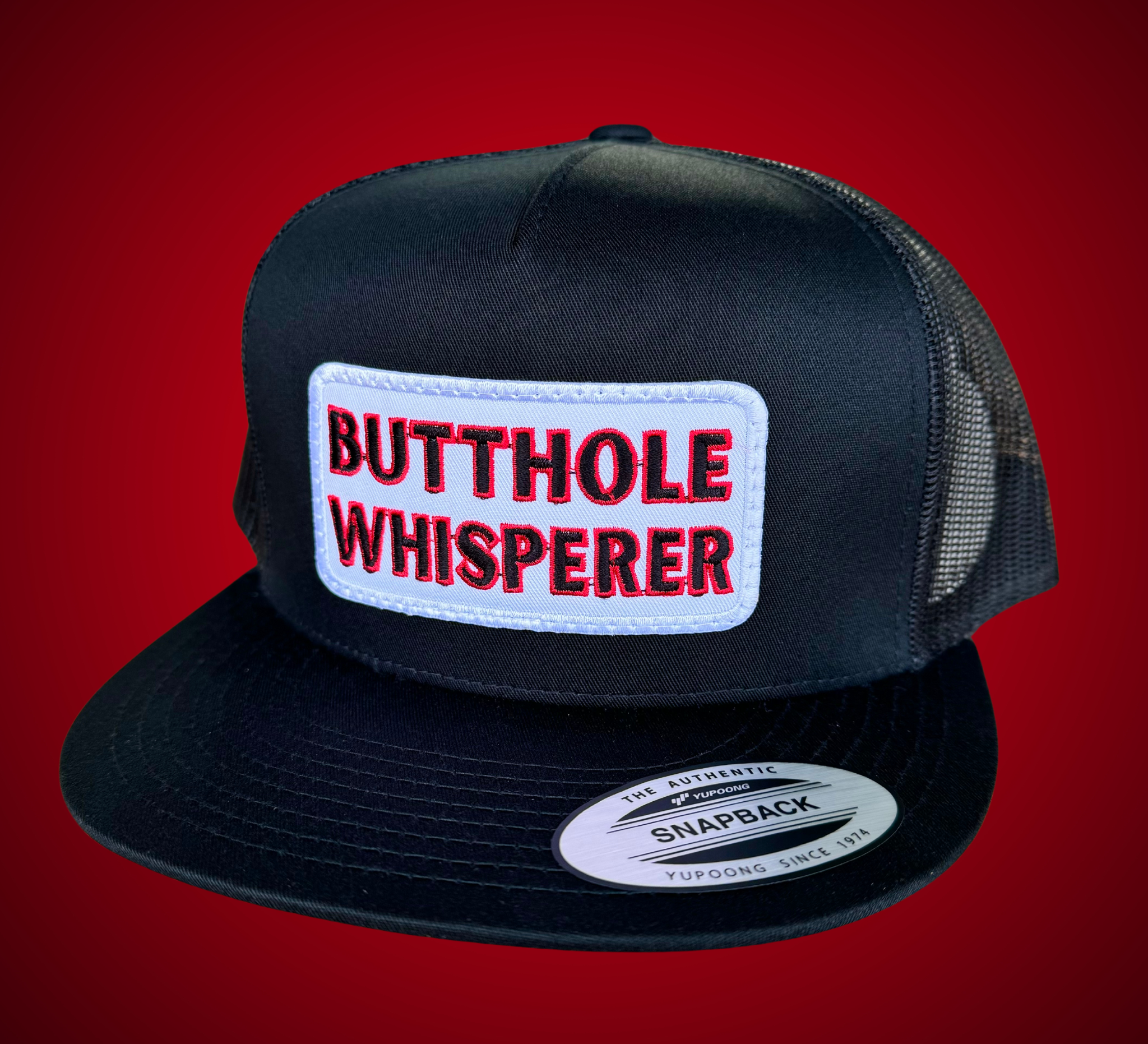 QUICK ORDER Butthole Whisperer Hat - leather circle skeleton patch
