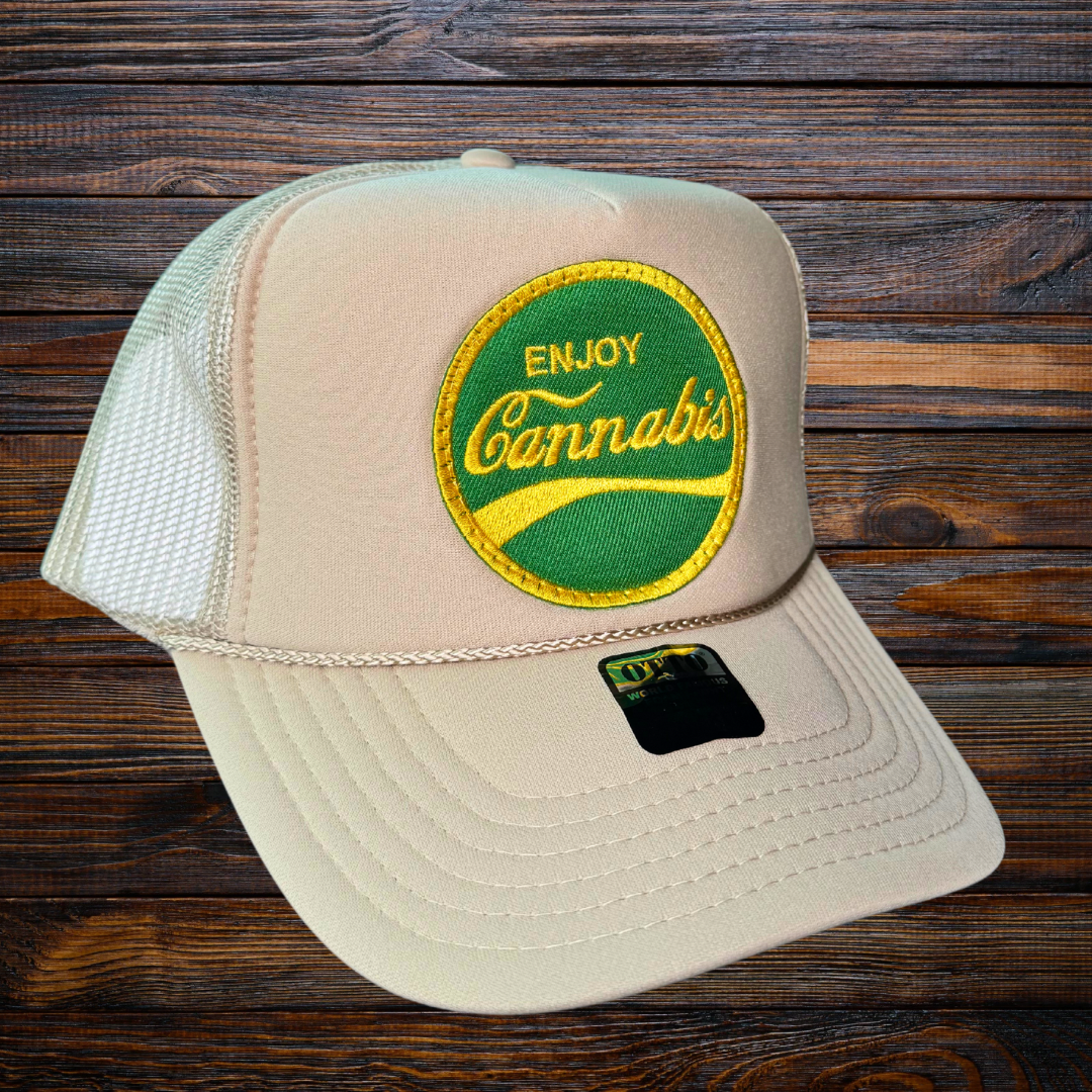 QUICK ORDER Enjoy Cannabis Hat - Green/ Gold Patch | Tan Otto foam