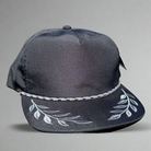 flat bill, solid non-mesh back, unstructured, 5-panel, Bay Leaf embroidered bill, nylon rope, adjustable snapback closure