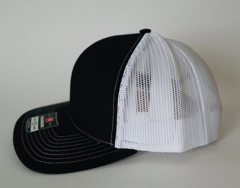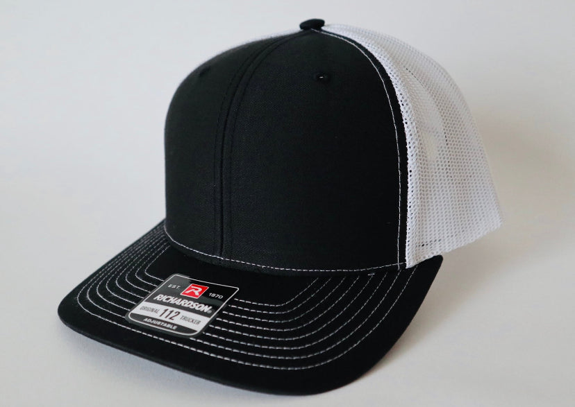 *XL* Richardson XL 112 Classic Trucker Hat- Black/ White