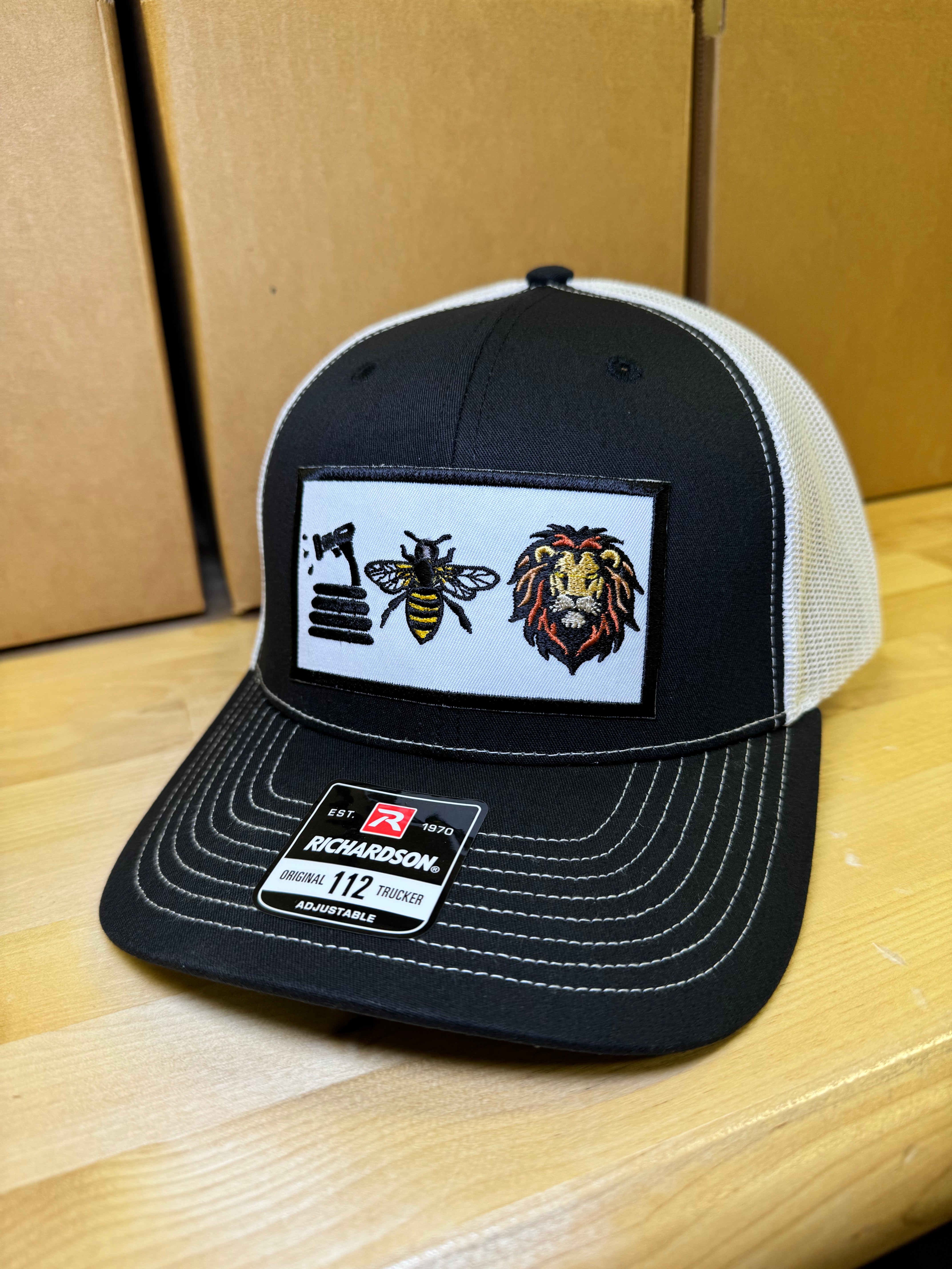 Yupoong 6006 Blk/Wh/Blk - Blk Patch