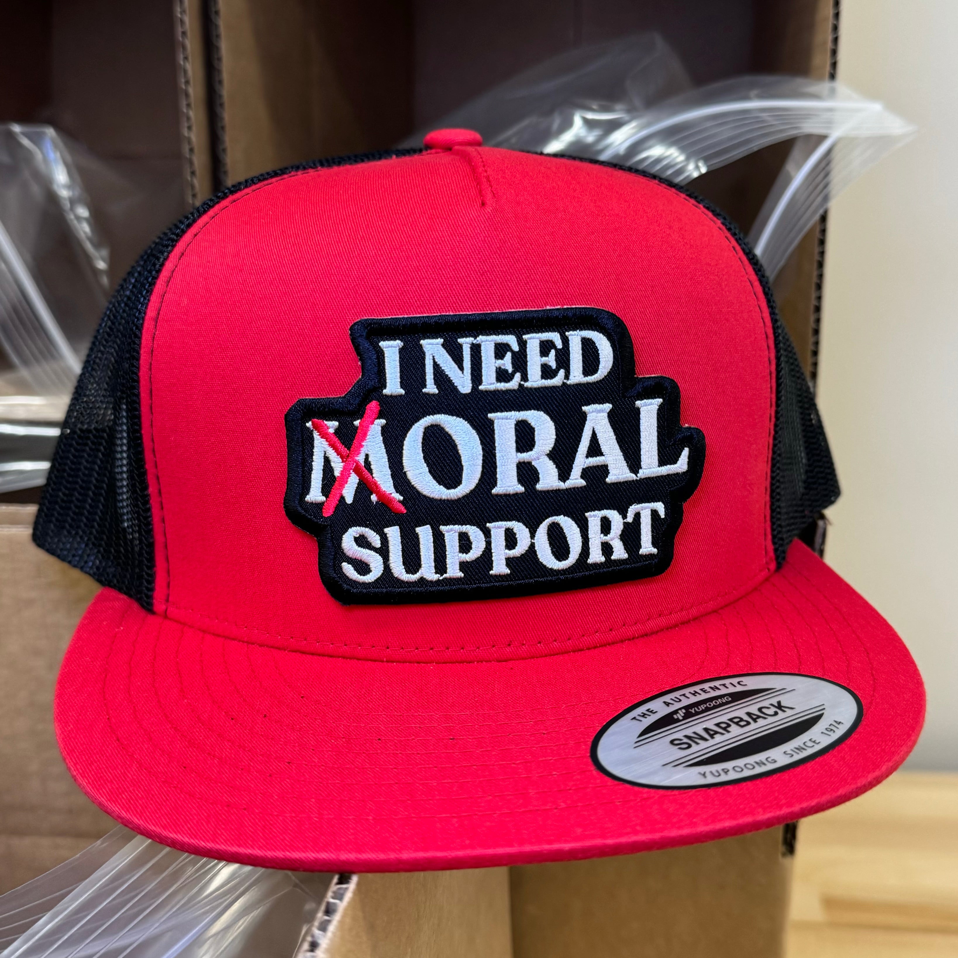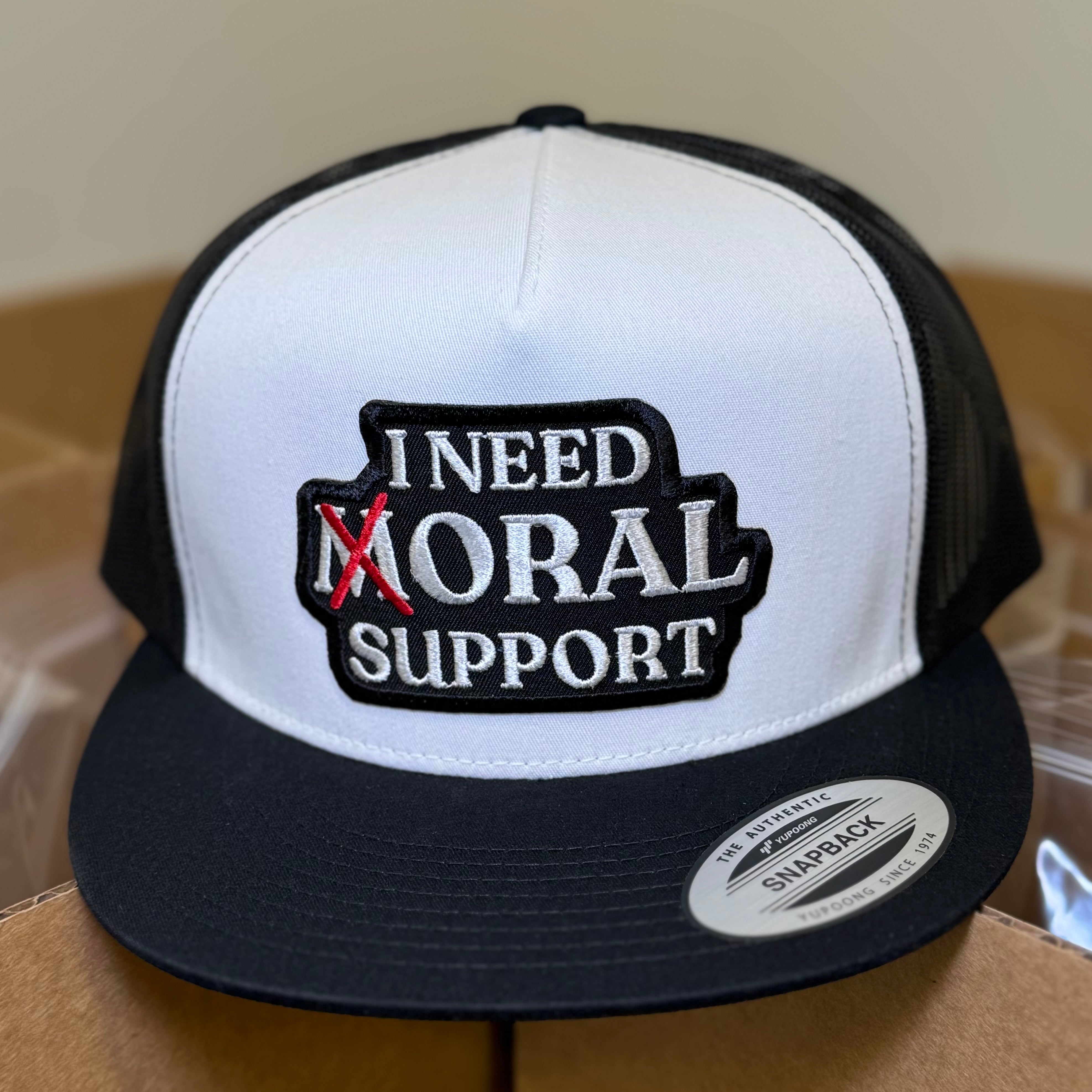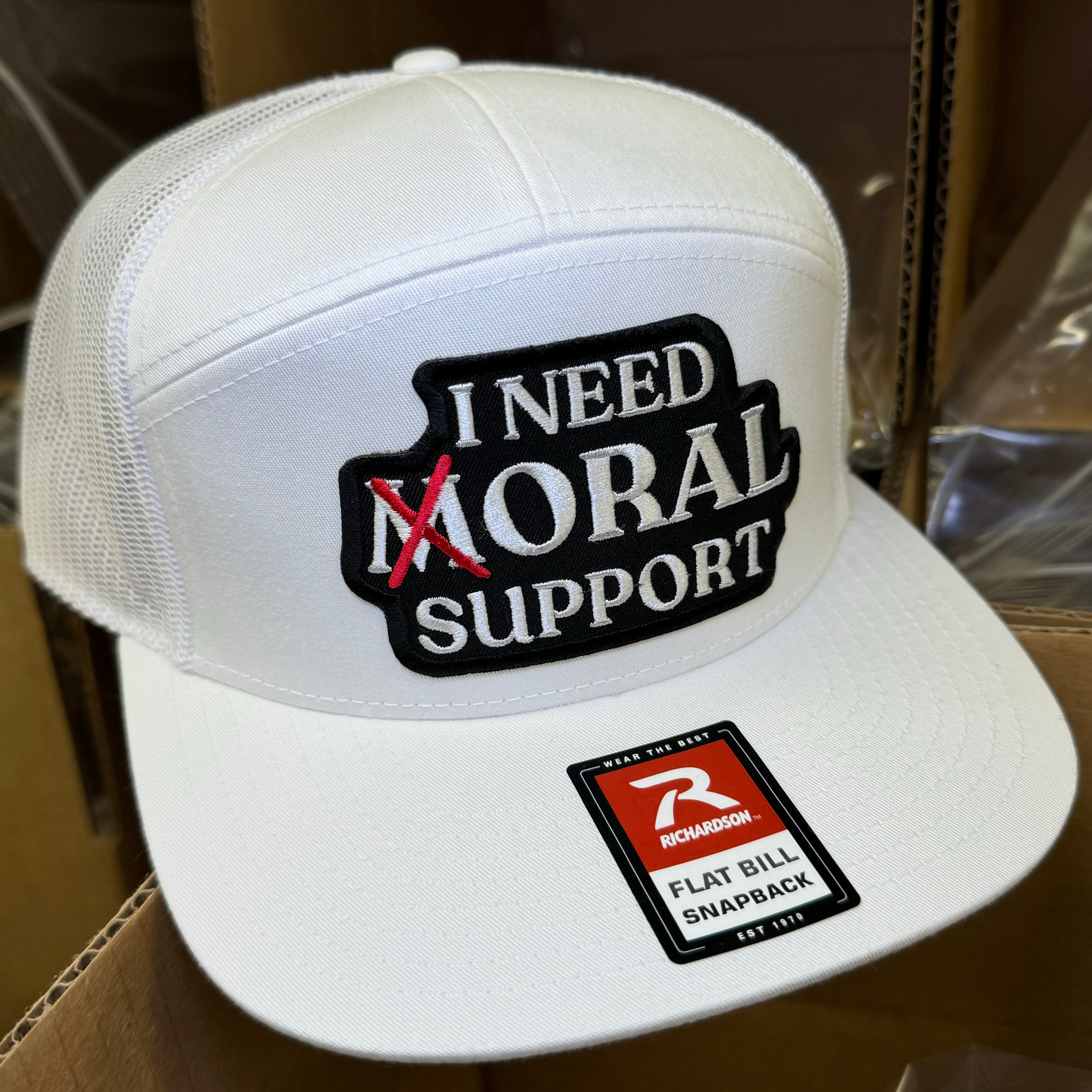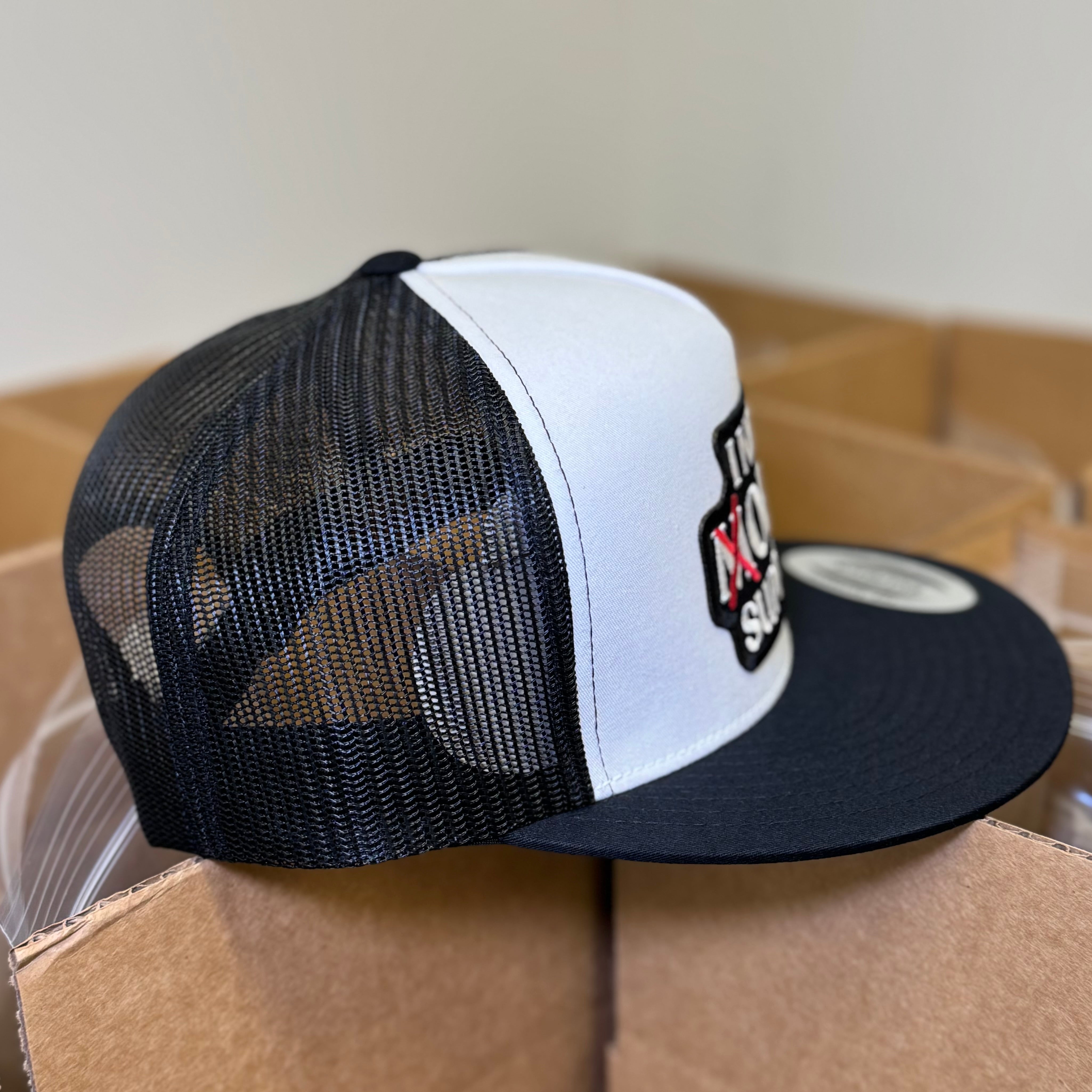 features flat bill, mesh back, high profile, 7 panel, adjustable snapback closure