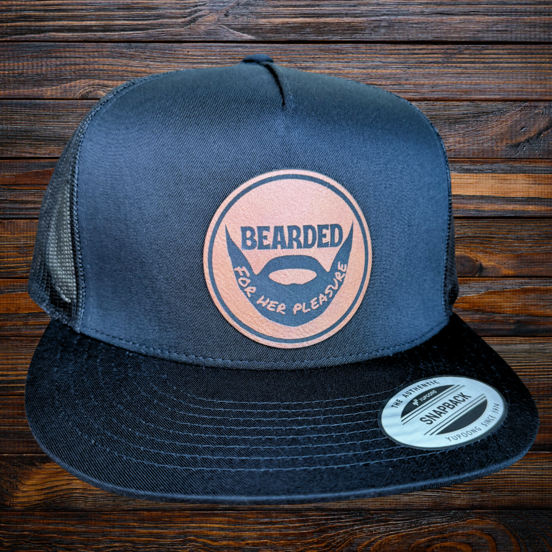QUICK ORDER Bearded For Her Pleasure Hat - Black 6006 / Leather Patch