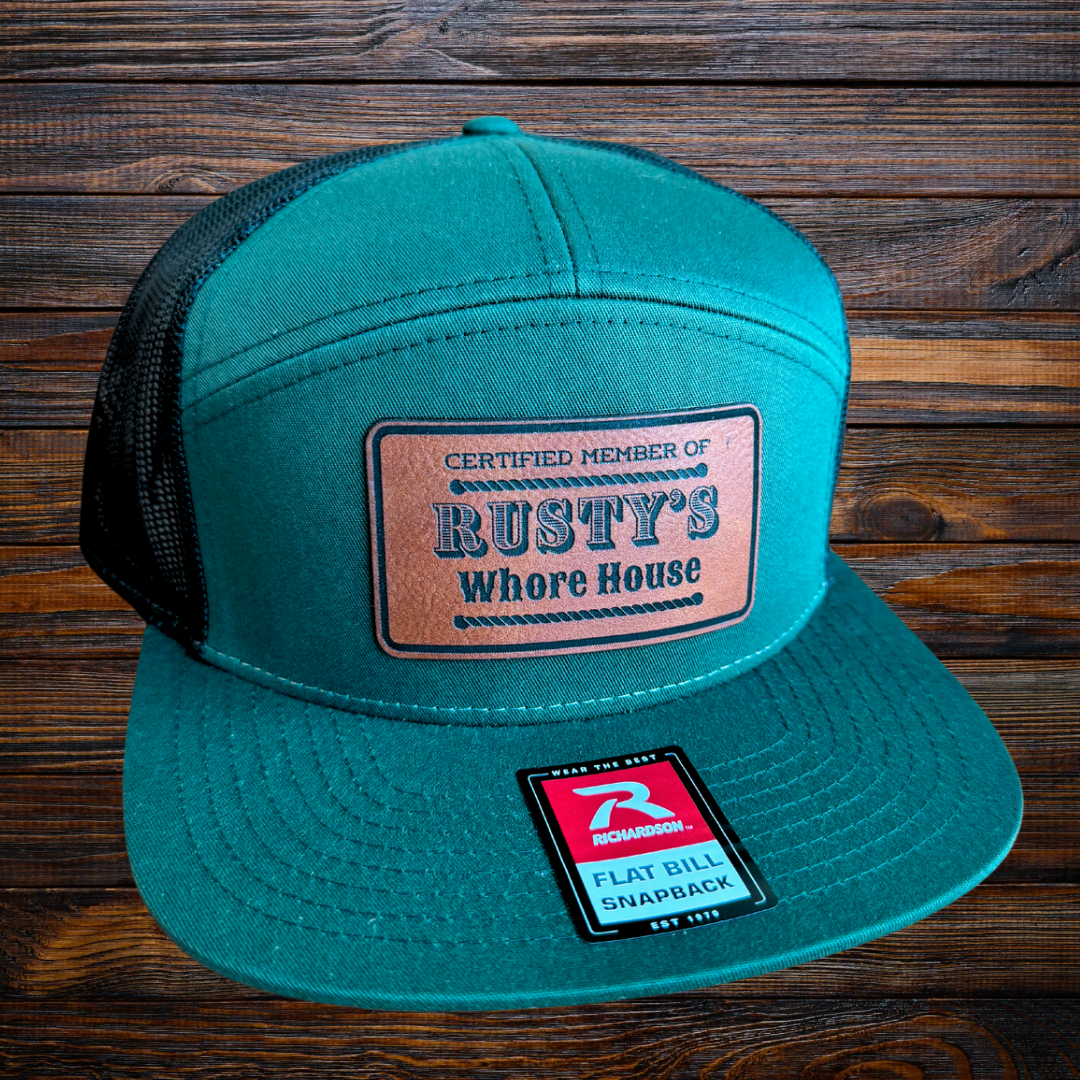 QUICK ORDER Certified Member of Rusty’s Whore House Hat - Green/ Blk 168 | Leather Patch