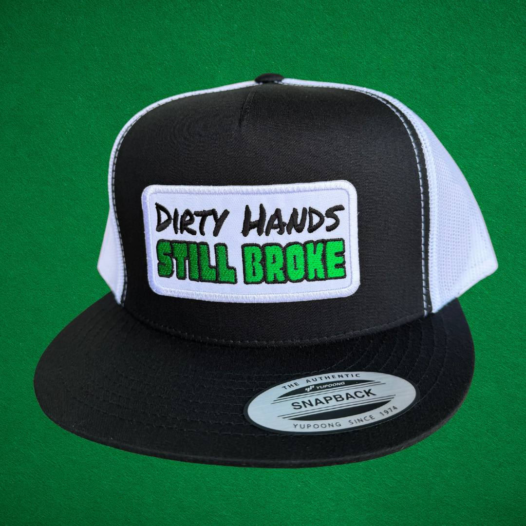 QUICK ORDER Dirty Hands Still Broke Hat - Green Patch | BLK/WH 6006