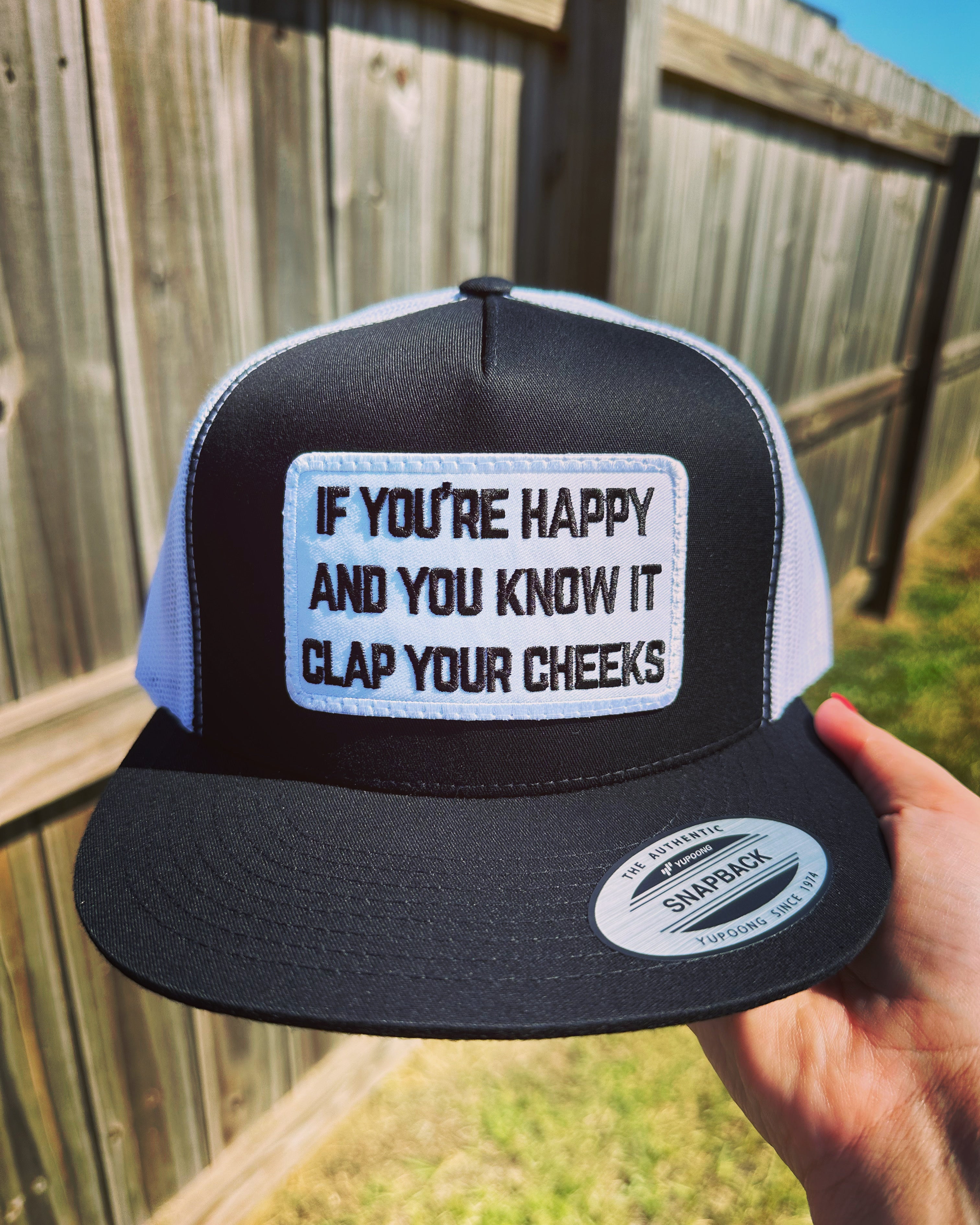 QUICK ORDER Clap Your Cheeks Hat - White Patch/ Black & White 6006