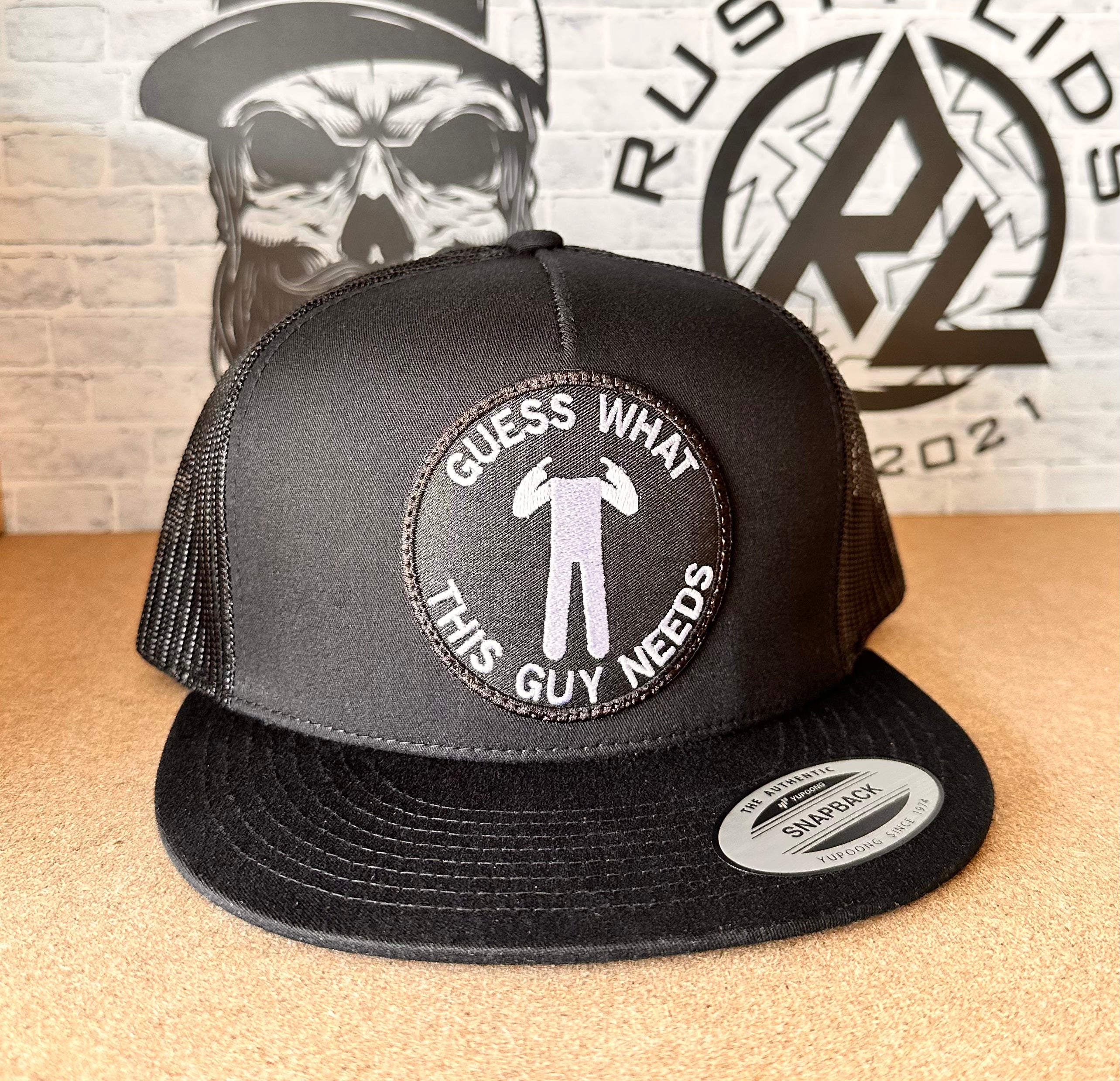 QUICK ORDER Guess What This Guy Needs Hat- black hat-black patch