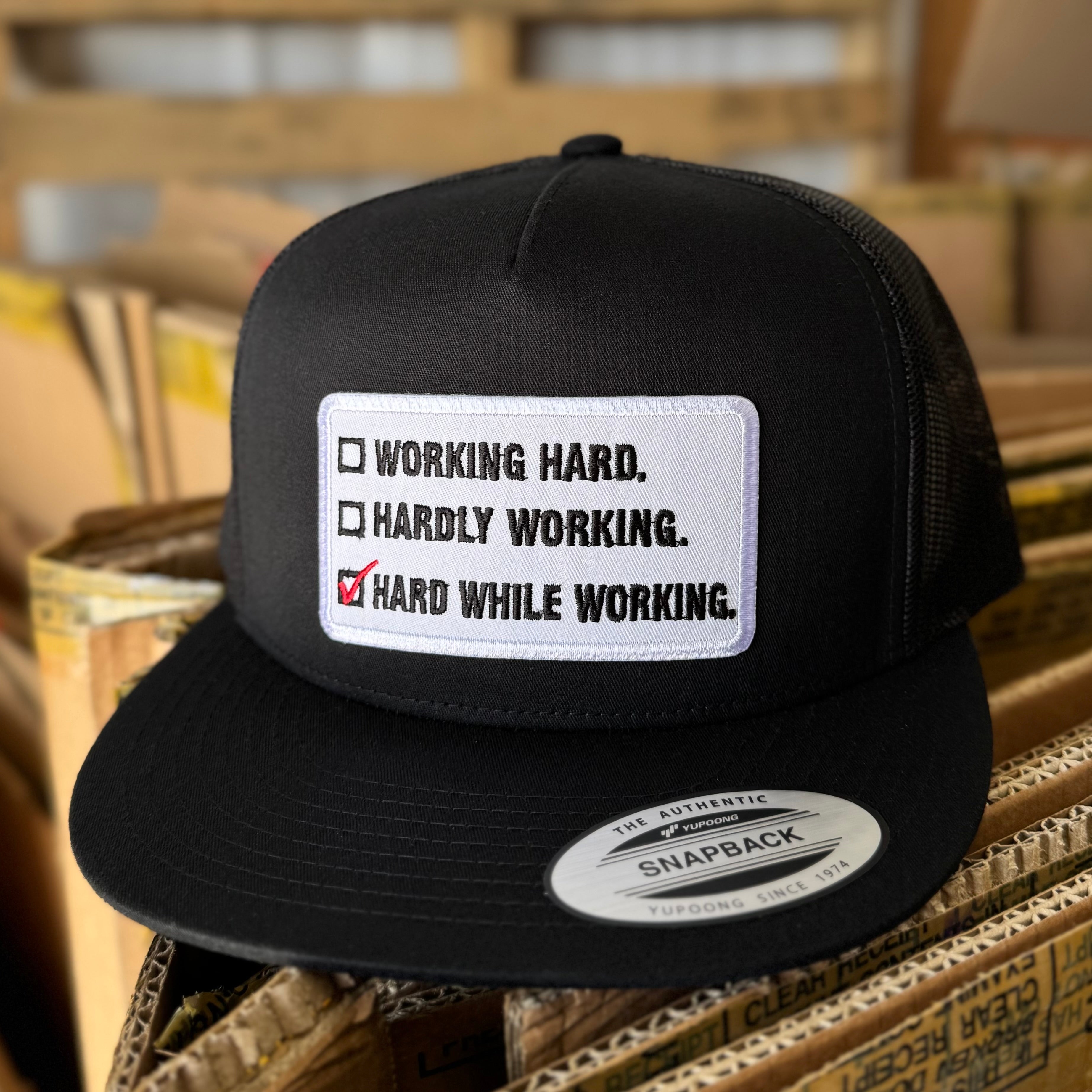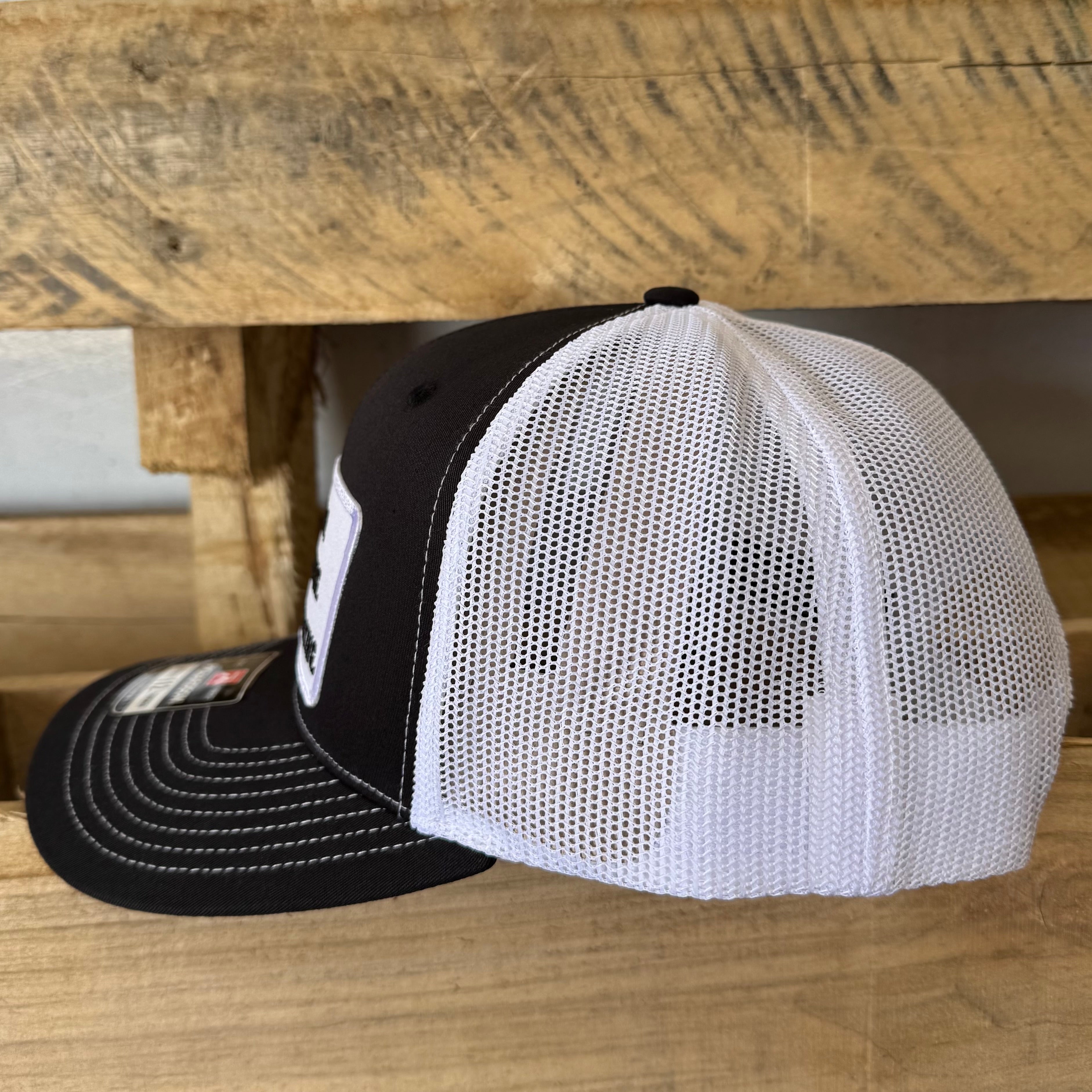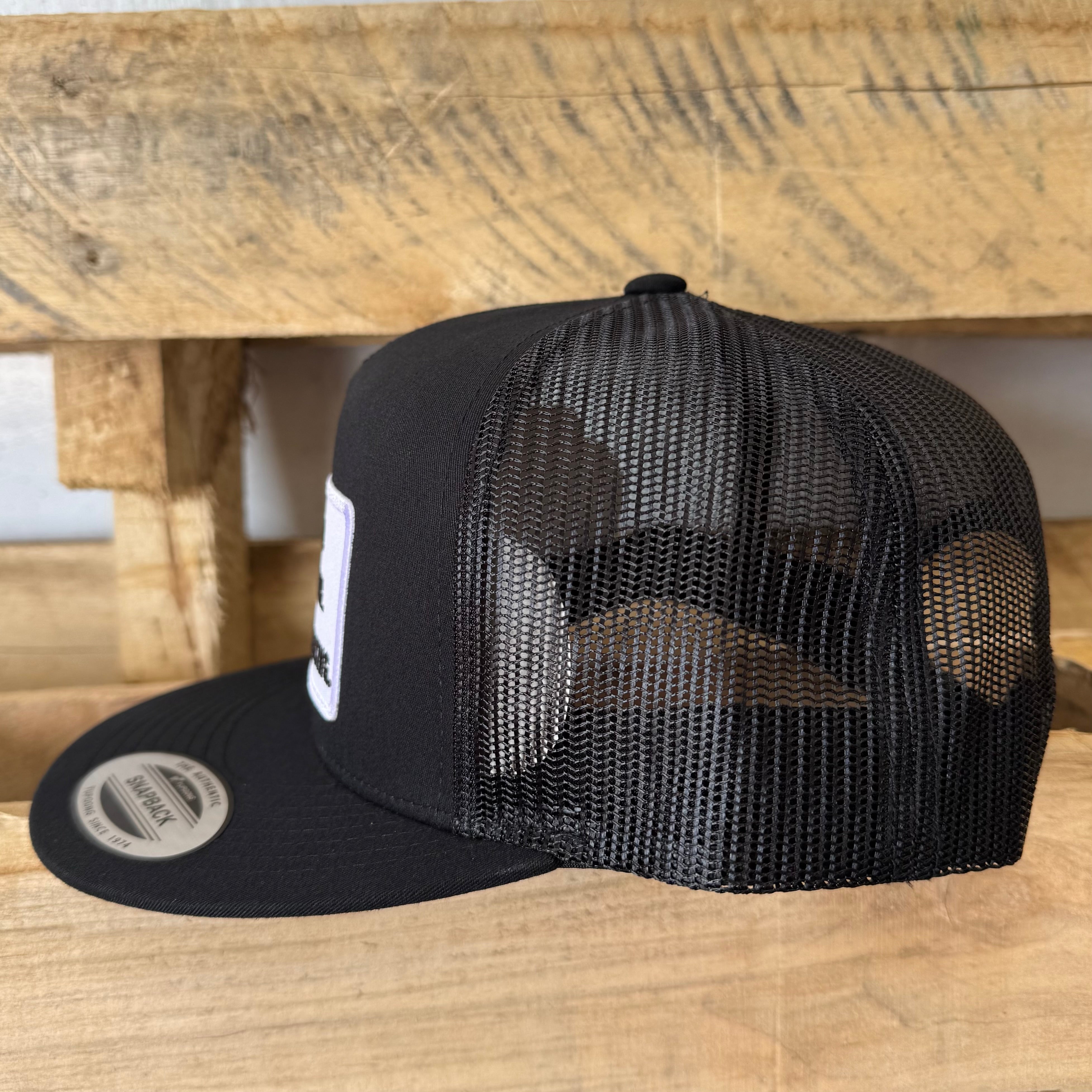 curved bill, mesh back, mid profile, adjustable snapback closure