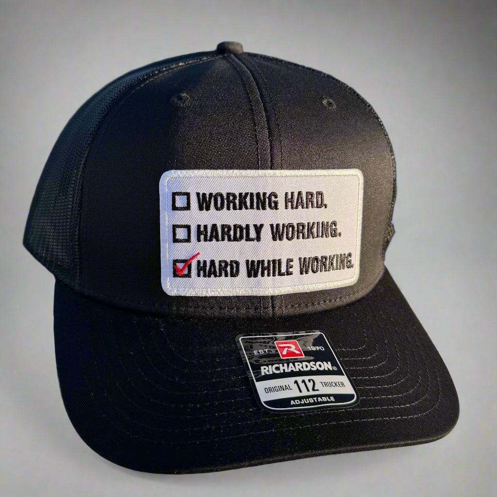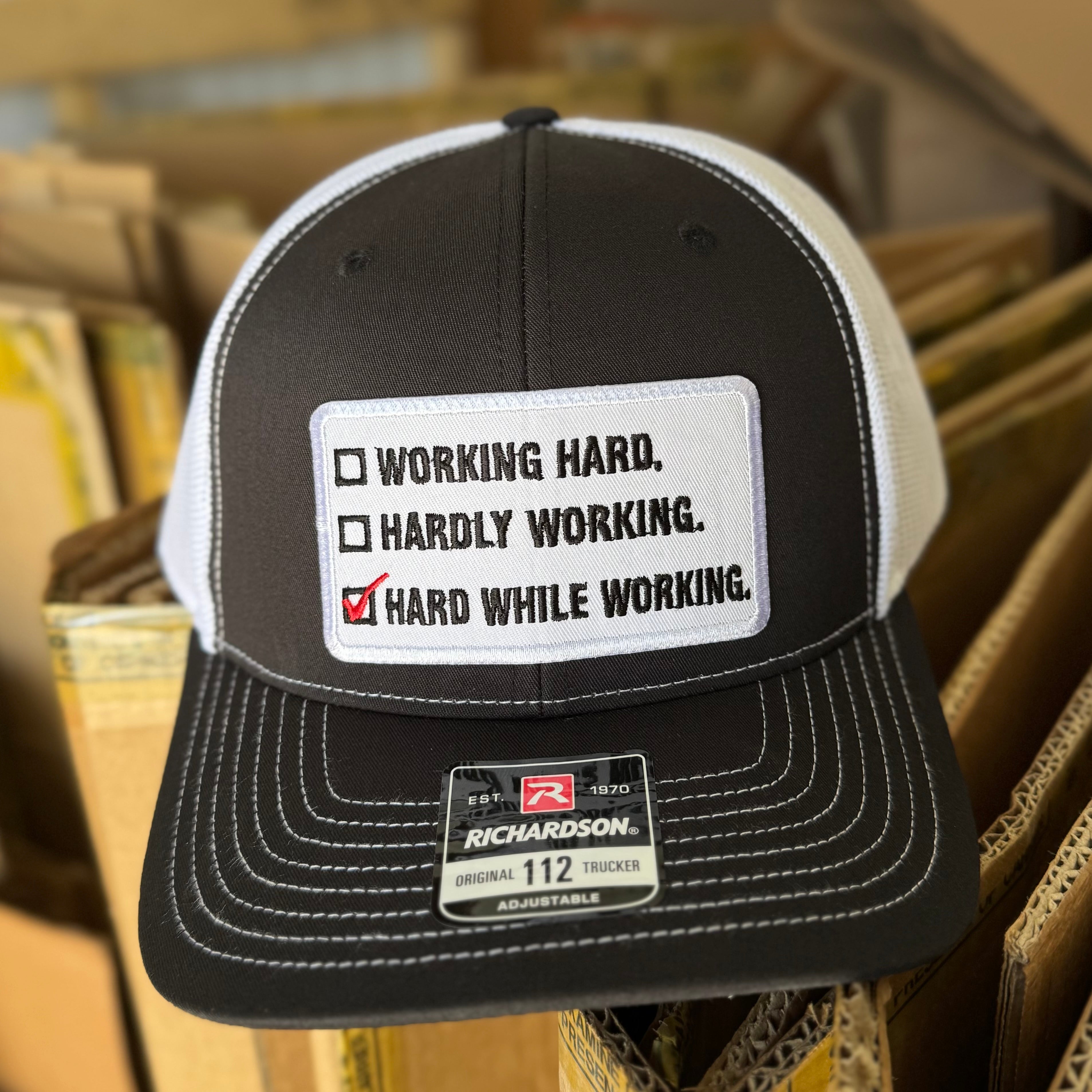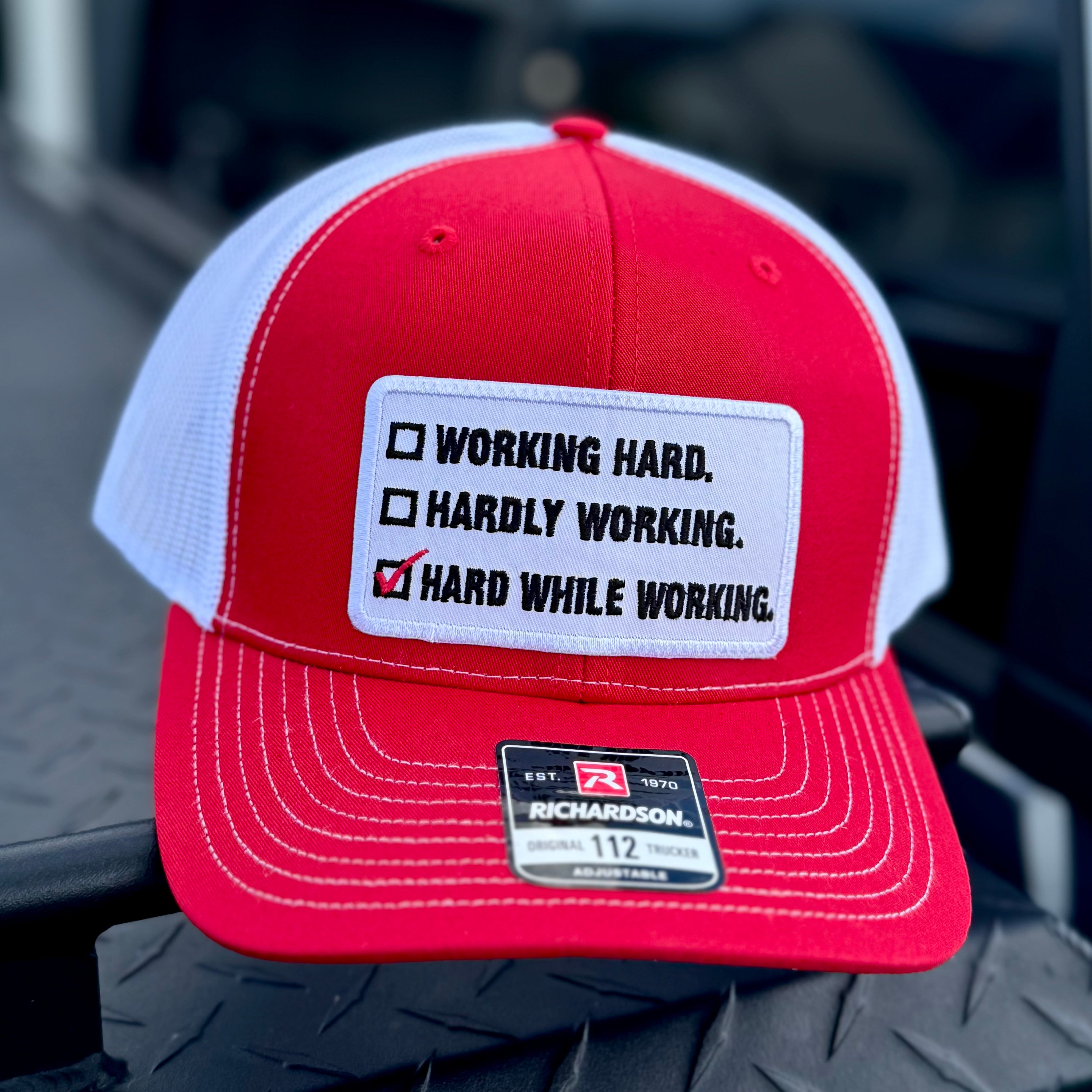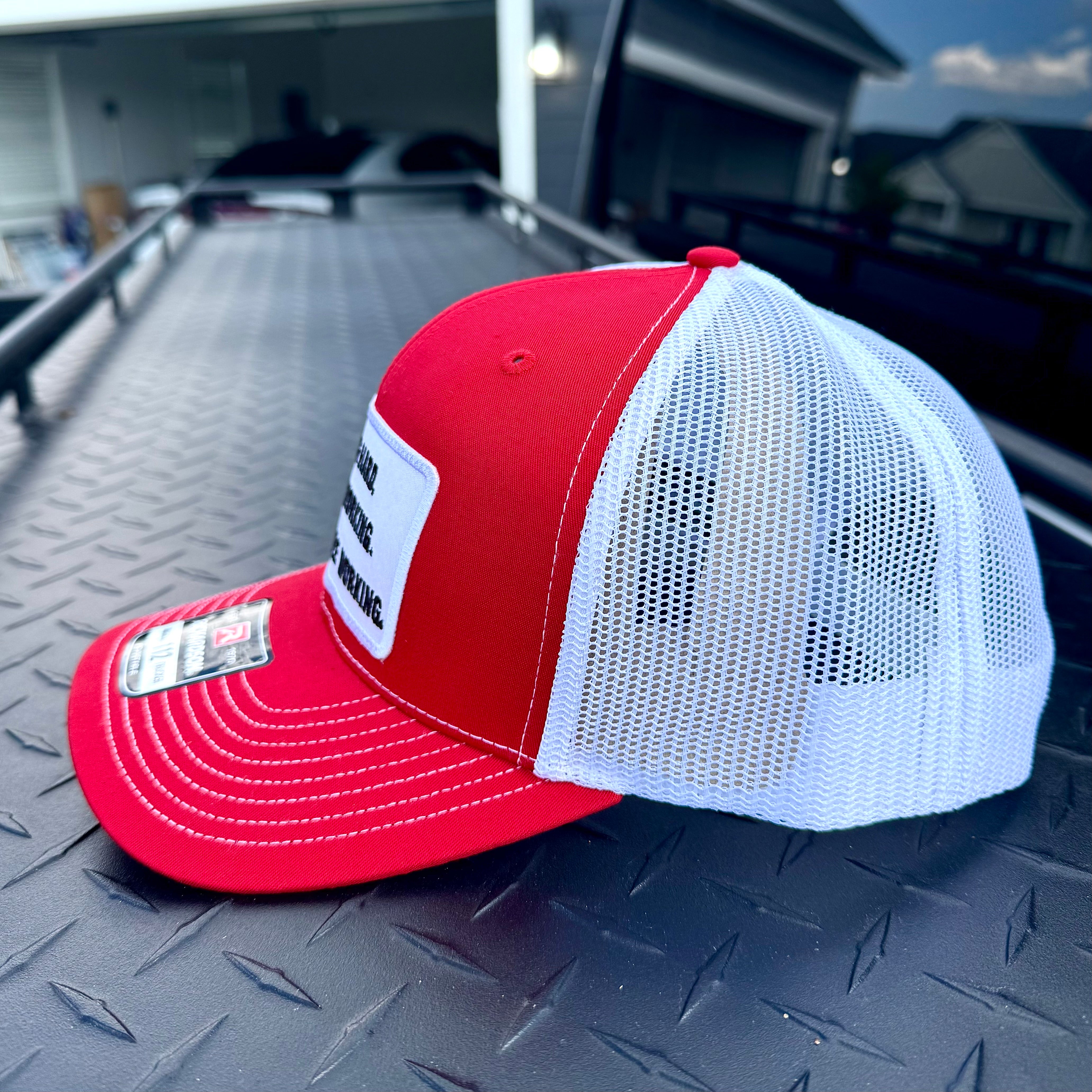 curved bill, mesh back, mid profile, adjustable snapback closure