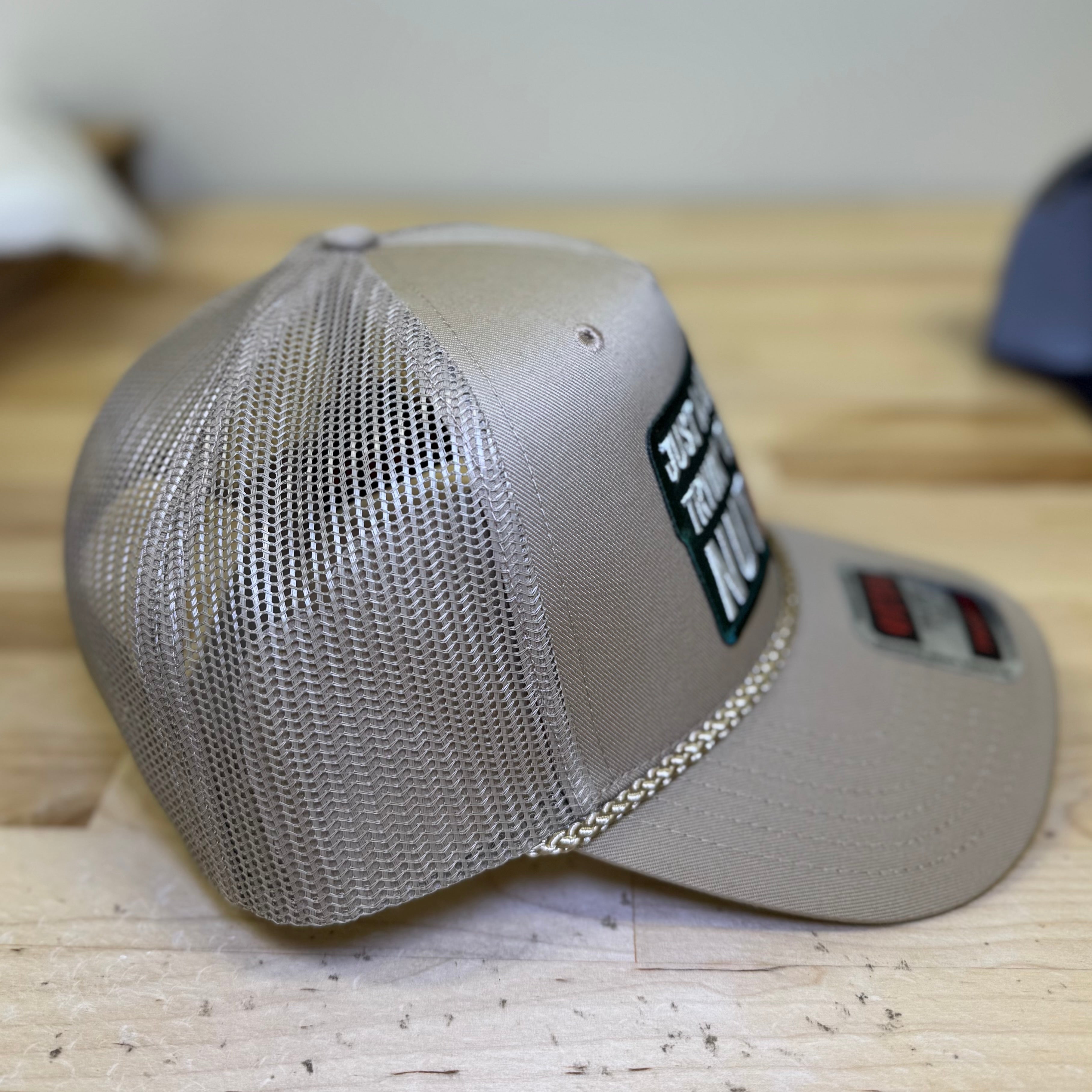 curved bill, rope, mesh back, high profile, adjustable snap closure