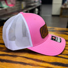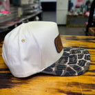 curved bill, mesh back, mid profile, adjustable snapback closure