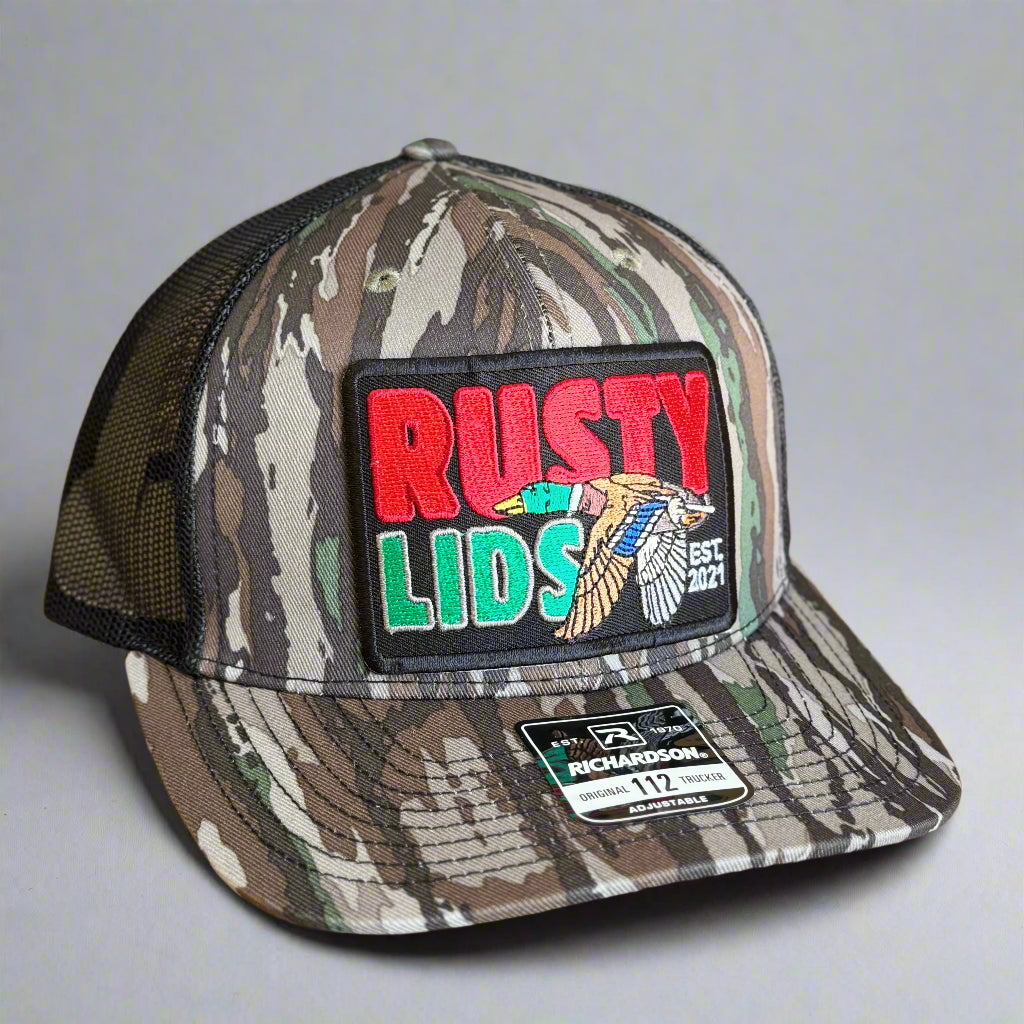 Rusty Lids Mallard Hat - black background patch