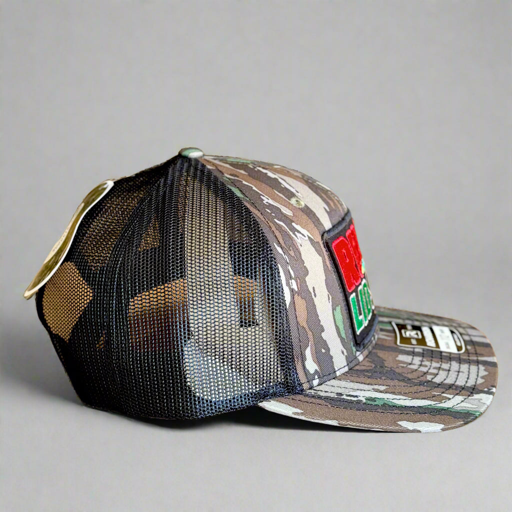hat brand: Richardson 112 Realtree Bottomland Camo/ Black