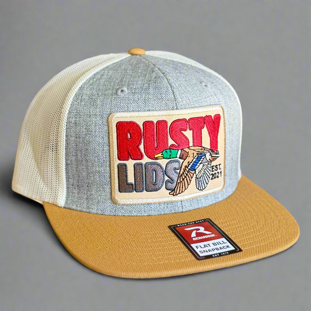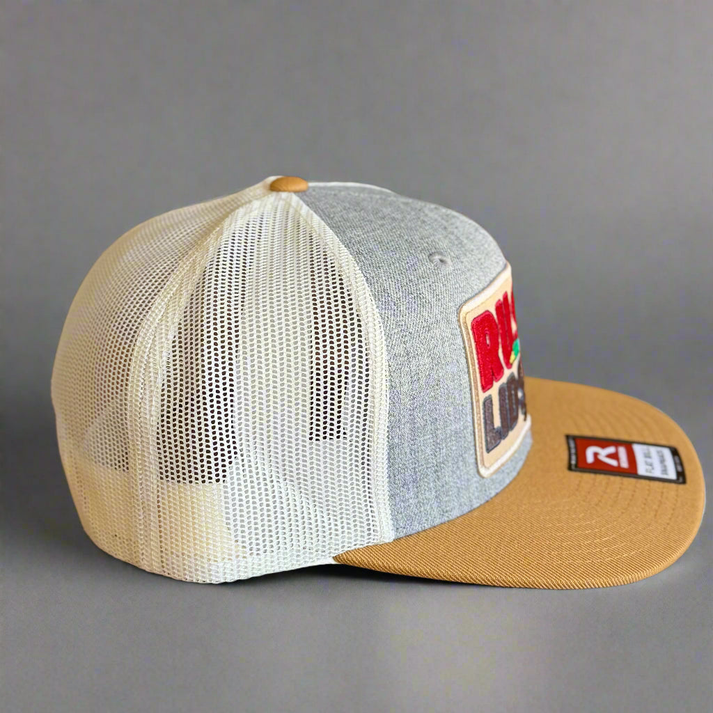 hat brand: Richardson 511 - Heather/ gold/ birch