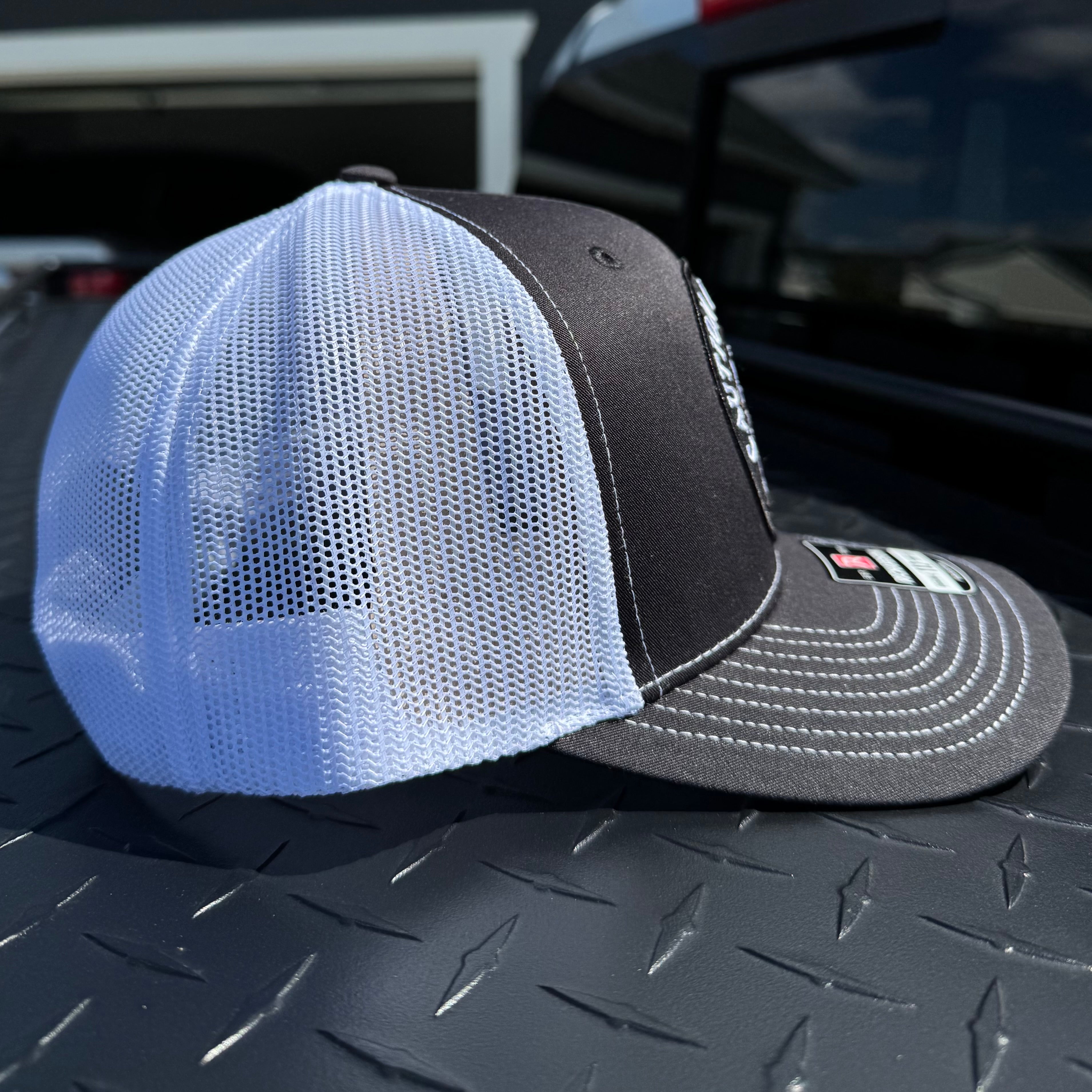 curved bill, mesh back, mid profile, adjustable snapback closure