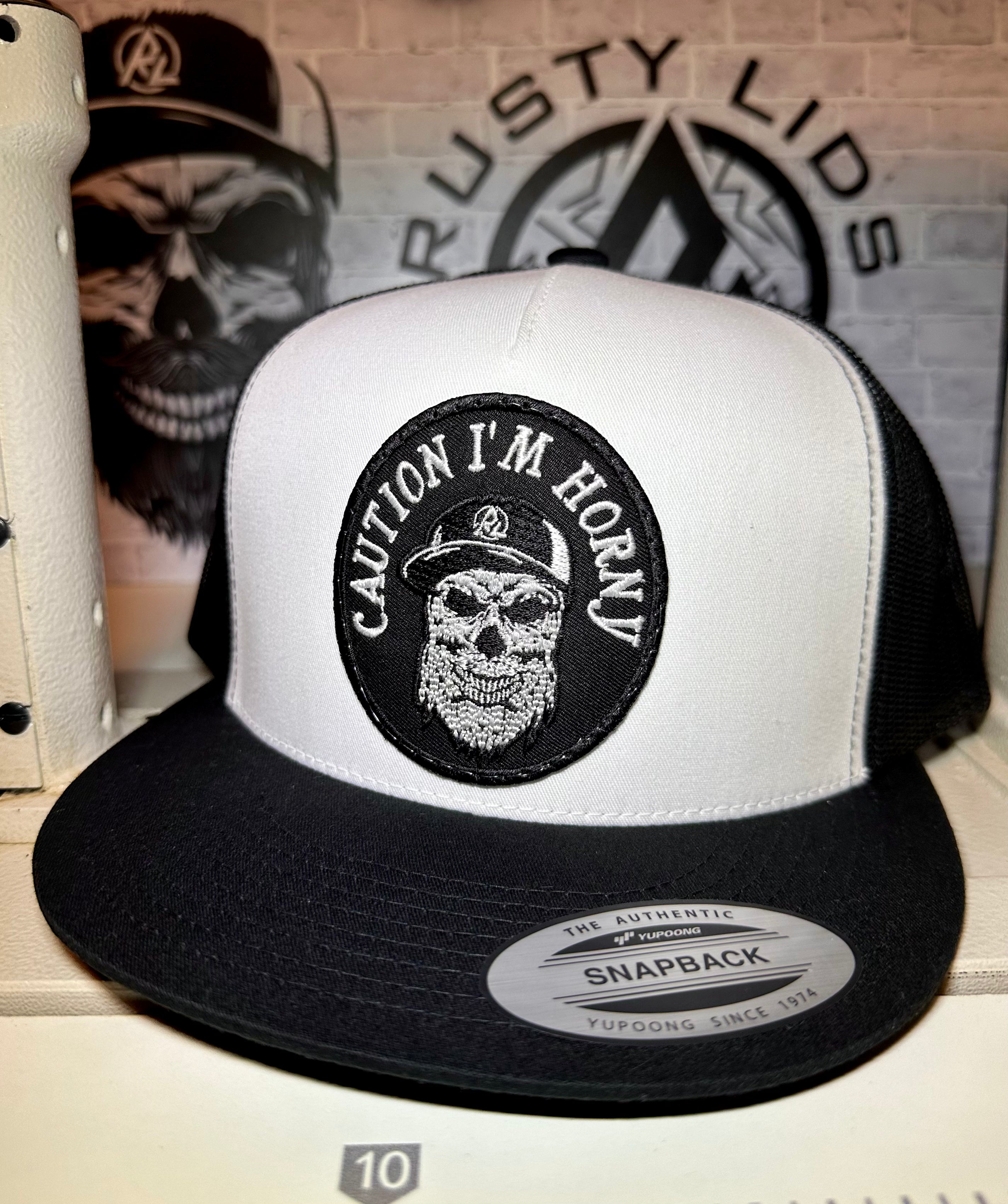 Caution I’m Horny w/ Rusty Lids Skull patch