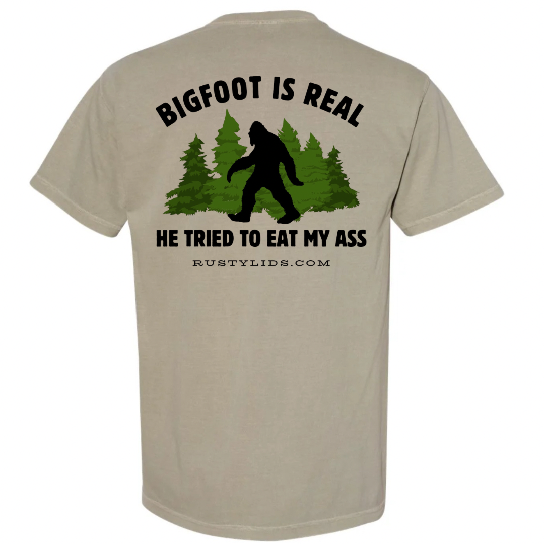 Comfort Colors Bigfoot is real and he tried to eat my ass Pocket Tee - Sandstone