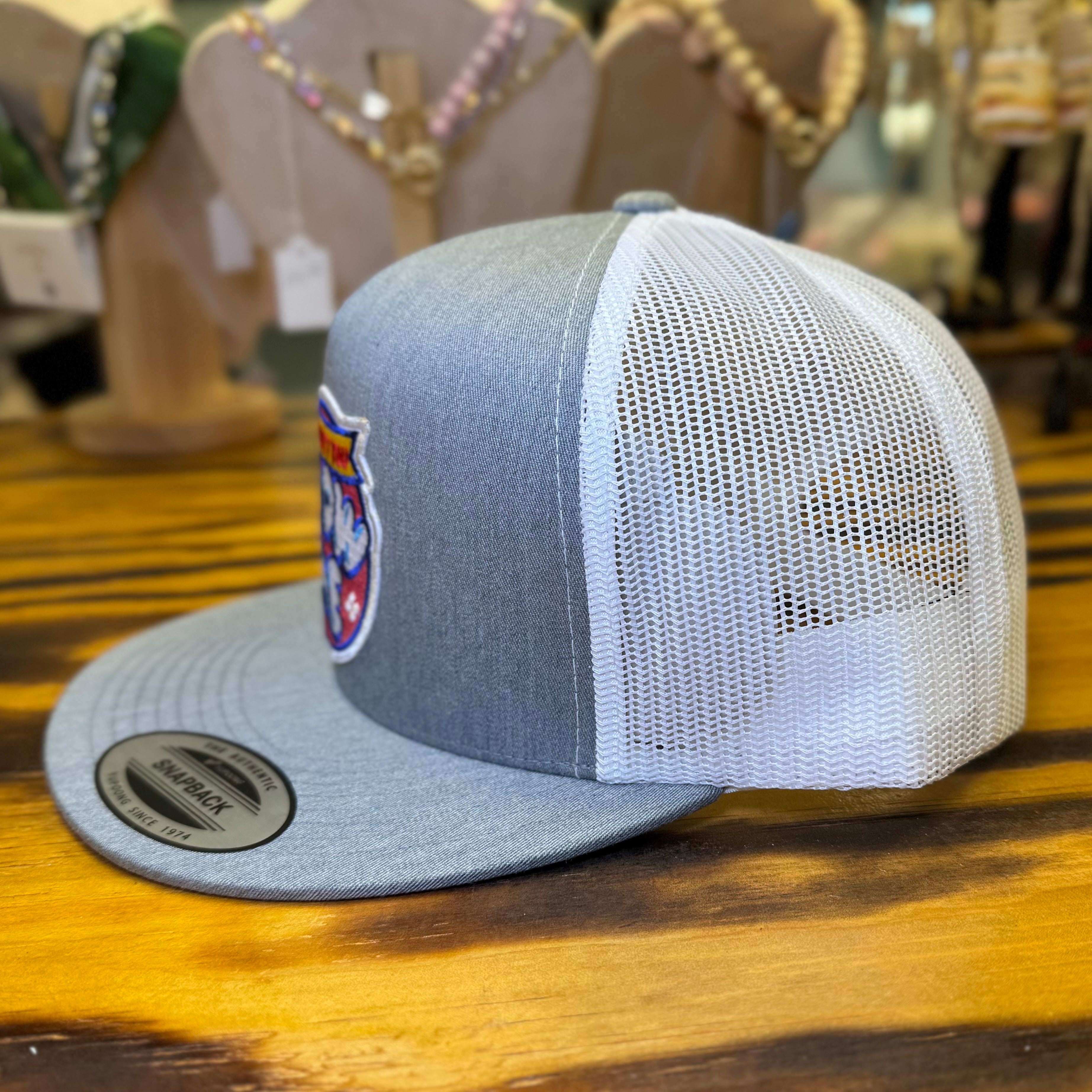 Flat Bill, Mesh Back, High Profile, adjustable snapback closure