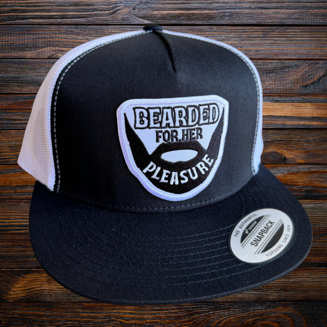 QUICK ORDER Bearded For Her Pleasure Hat - Blk/ Wh 6006 | Blk/ Wh Beard Patch